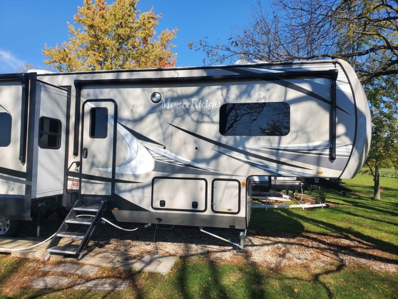 | 2021 Mesa Ridge 5th Wheel 374 BHS. Only miles it has on it is from dealership and back to its seasonal spot. King Size bed, 4 slides, bath and a half, TONS of storage! Stove so big you could cook a turkey in it! Residential side by side refrigerator with ice maker. Bunkhouse has 4 beds; 2 bunks, a huge couch that is 3rd bed and dinette that turns into 4th bed, plus it's own bathroom. Living room couch pulls out to queen size bed and has storage underneath. Fireplace that is amazing! Outdoor kitchen that has sink, flat top grill, mini fridge, storage and another gas grill that attaches to side of camper. 1 year old memory foam mattresses in all beds! Kids have outgrown camping. If you want to package it with a truck, that can be arranged. Serious buyers only please. No trades. |