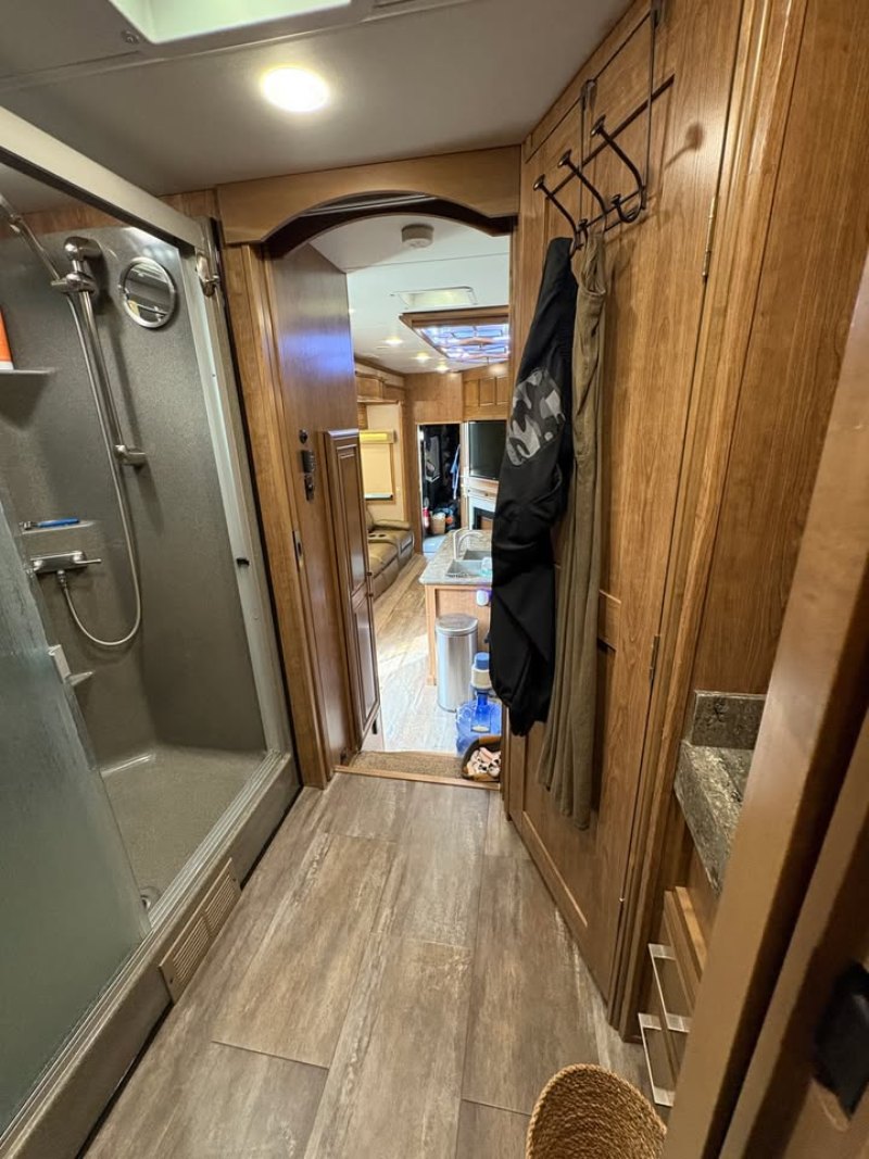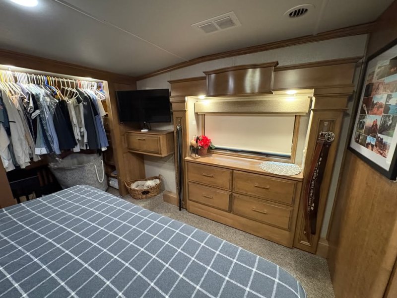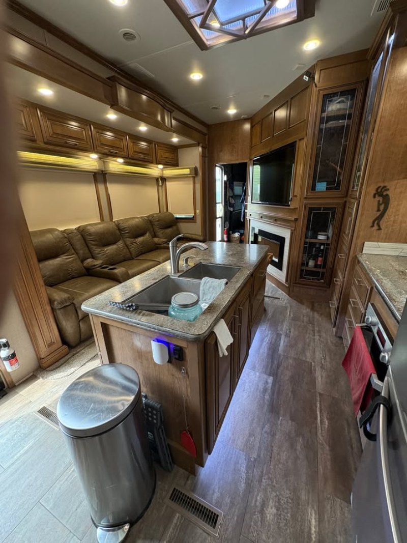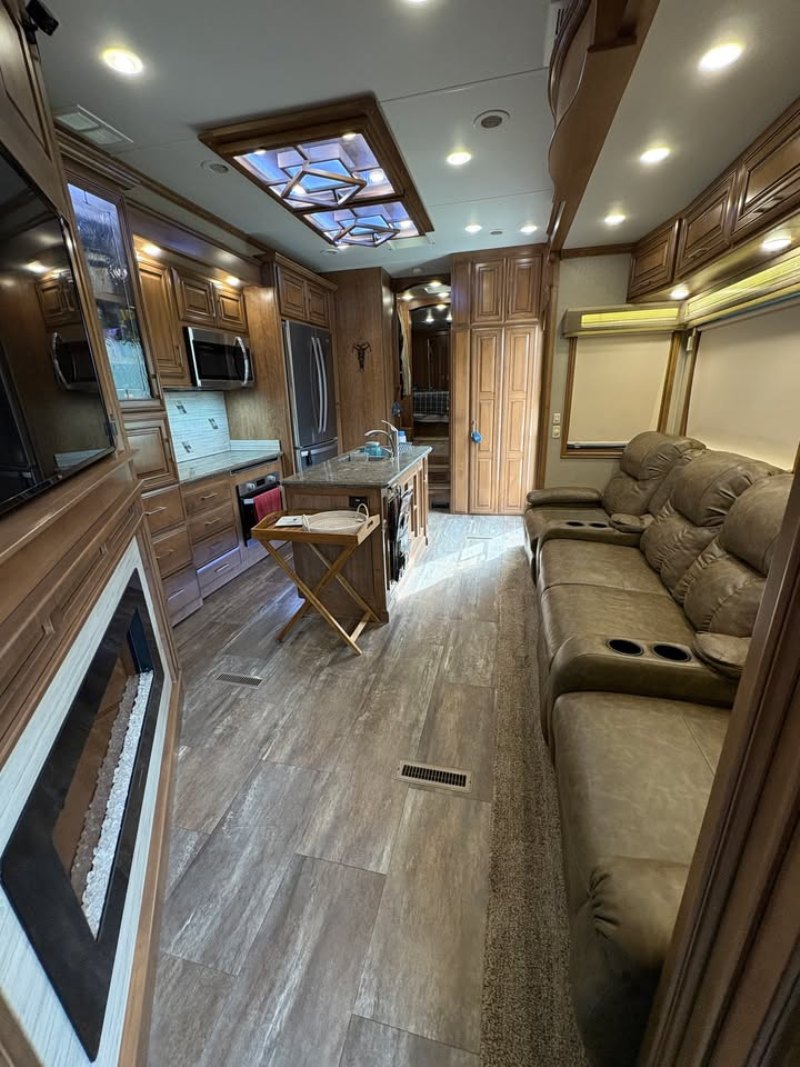 | Travel in style AND with your toys! FRONT & REAR ENTRY DOORS * 3ACs * FIREPLACE * 4 SLIDE OUTS * WINDOW AWNINGS * ELECTRIC PATIO AWNING * CENTER KITCHEN * CENTER LIVING ROOM * 3 BURNER STOVE WITH SEPARATE OVEN * MICROWAVE/CONVECTION COMBO * HOUSEHOLD REFRIGERATOR * KING SIZE BED * SPACIOUS CLOSET * VACUUM SYSTEM |