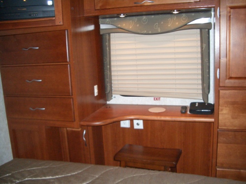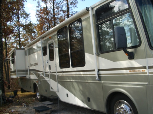 2003 Fleetwood Pace Arrow 37A w/2 Slides 38ft. PRICE NEGOTIABLE, washer/dryer, Onan generator, new front tires, side-by-side fridge w/ice maker, all leather furniture, new digital tv up front, satellite system, backup camera with sound, DVD, AM/FM Stereo with surround , CD and cassette player, all window awnings, 2 AC 2 furnace, Workhorse chassis, 8.1 Vortec engine, allison automatic transmission, 30,500 miles, excellent condition. |