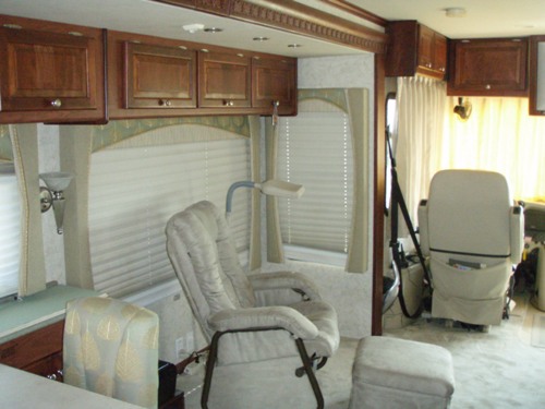 | 2006 Allegro PHAETON Series M-40QDH CAT 350 - 40' - Very Good Condition, Non-Smoking, No Pets, Cat 350hp, 49,000 Miles, 4 slides, Refrigerator, Fire, Awnings, Hotwater Htr, Generator, Smoke Alarm, Tile, Washer, DVD, Power, Fog Lights, Bath, Captains Chair, Roof Vent, Stove, Tinted Glass, AM-FM/CD, Leather, Cruise, Rearview Camera, Sofa, Slide-Out, Television, Cabinets, Cassette, many options, 390watts of solar power, 2000 watt inverter, Pro Fill for batteries, Sun Screening for front and side windows, tire covers, new tires, Other equipment; Sunlit Sand Full Body Paint, Cherry Bark Interior Cabinets, Ceramic Tile in entry, kitchen and bath area, Atwood Automatic Electric Jacks, Washer/Dryer, Automatic Awning on Passenger Side, Sirus Radio AM/FM/Weather Channels and CD and Cassette capabilities, Sleep By Number Mattress with wireless control for both sides, Water filter for Kitchen, and Bathroom sinks, Water-softener system, Extended stay valve and hose for propane system, CB radio and antenna, 50ft of air hose for air compressor, Indoor outdoor thermometer, Central Vacuum system, Automatic satellite dish, Hadley Air Horns, Side shades for Driver and Passenger Cockpit, Power Sun Visors, Ultra Leather Driver and Passenger Seats, Driver Seat 8 way seat, Ultra Leather 74in DE Sofa Sleeper, 3 Fantastic Fans with remote controls, Manual Entry Door Awning, Microwave/Convection Oven, 3 Burner Stove top with gas Oven, Free standing dinette with 2 standard chairs and 2 folding chairs and side cabinets. Service records available. Extended warranties. Private Sale. Asking $155,000. | ||