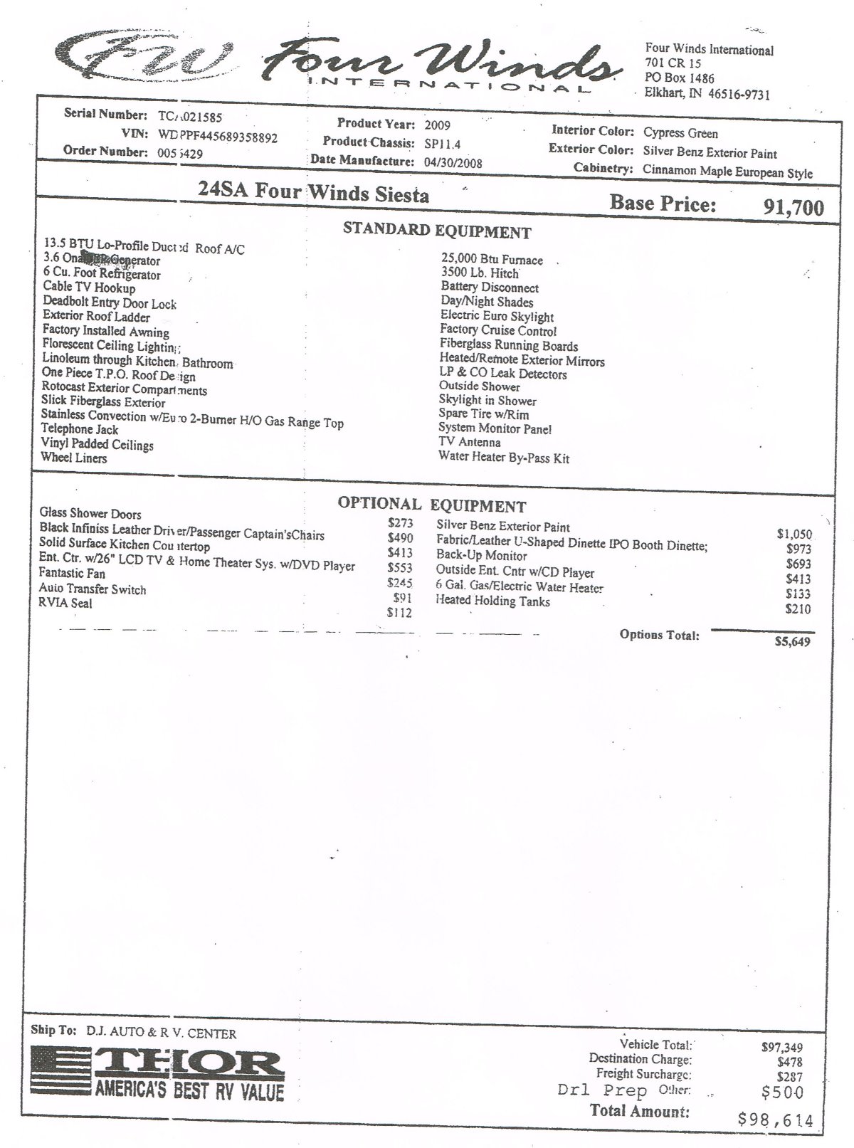 | >> Window Sticker / Build Sheet - Specs & Floor Plan << |