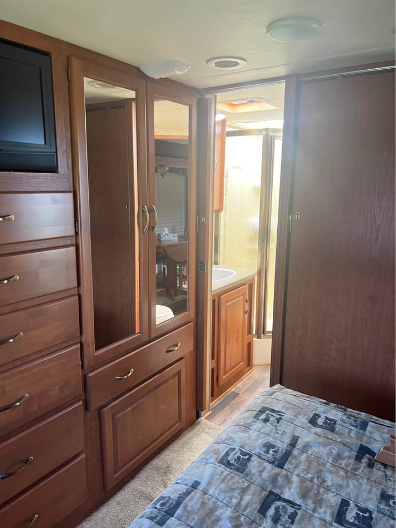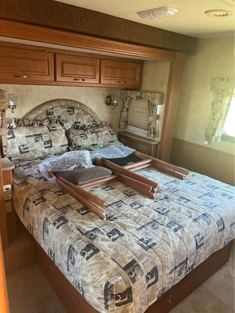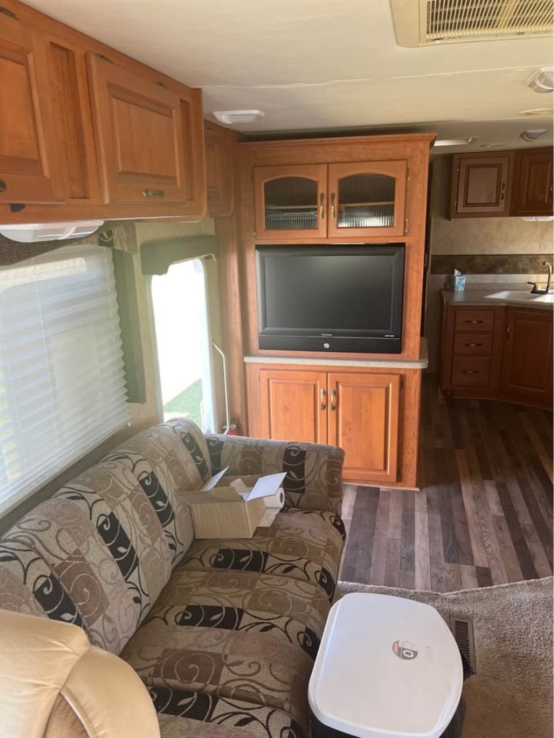 In Winter Storage now… $28,000 Class A motorhome … Ford Triton V10 gasoline engine… 38ft long with 3 slides… Single owner very good condition no kids… no smokers… low miles only 12,500 actual miles … everything works as it should … new flooring in dining and kitchen area … exterior faded and shows obvious weathered for a 18 year old unit… Motivated seller make a reasonable offer and it’s yours!! |