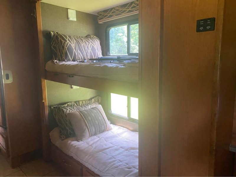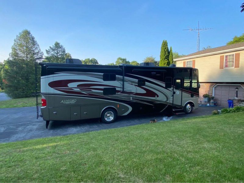 Allegro Open Road 35QBA Ford F10 chassis, Ford V10 Triton engine. Only 14,350mi, Garage kept, 4-Slide outs, Driver’s door, SumoSprings, Safe-T Plus Steering stabilizer, Heat pump/AC unit, bunk beds with DVD players, Queen sized master bed, Over the driver’s compartment bed, Convection oven/microwave, Central vacuum system, 4-TV’s, Direct TV/Dish satellite system, Sirius Radio, surround sound w/sub DVD system, new tires 2022, Roof resealed 2024, New coach battery 2025, Lots of storage, Cummins QG7000 Generator only 81/hrs, GVRW 24,000 lbs. |