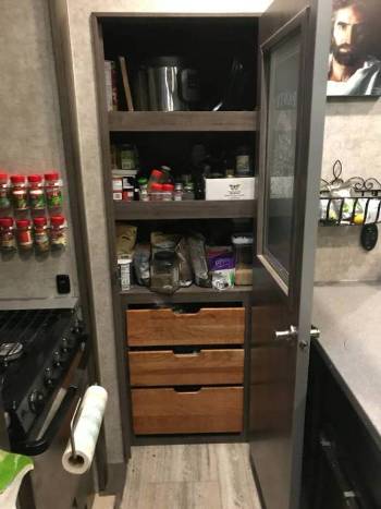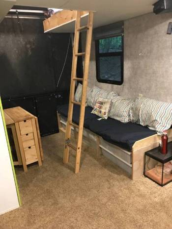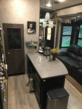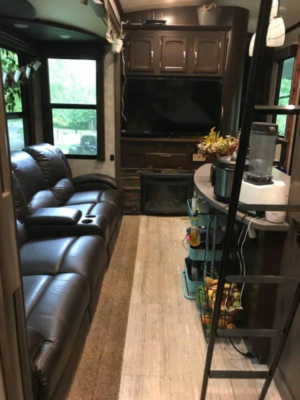 else. The entire 16’ garage was remodeled to create an additional living space with three loft beds, storage, mini fridge, tv/dvd, couch; we even had a small chest freezer back there! Plus put the back down for even more entertainment space! The main living area has access to a queen size loft, TONS of storage, tv/blu ray player and upgraded home entertainment system, four seat leather couch with all seats able to recline, large windows with blackout blinds, A/C unit, and a beautiful fireplace that does a nice job heating the room up-we used it in below freezing temperatures to supplement the propane heater. The kitchen boast a large pantry, huge residential double sink, great counter space, three burner propane stove and oven, convection microwave, and a double door fridge/freezer that automatically switches between shore power, battery, or propane making travel days a breeze with no worry of food waste. The master bedroom has a king bed with memory foam topper, great closet storage, dresser, under the bed storage, tv/bluray, and washer/dryer hookups as well as a second A/C unit. This whole thing has more storage space than our current living space that’s double the square footage! Set up is such a breeze, place jack pads, push a button, and watch the whole thing auto level on six jacks, hold down a couple more buttons to put the three slides out and awnings and connect your hoses and such and you’re done! It only ever took us 15-20 min. from pulling into our site to relaxing. Boondocking too is so easy with two 66 gal grey water tanks, a 66 gal black water tank, and 140 gal fresh water. Plus a 5500 Onan generator with 20 gal fuel tank and an add’l 40 gal auxiliary fuel tank and two 60lb propane tanks. Rig is also solar panel ready! Seriously, this thing has it all! Even better is that we are including jack pads, two lengths of fresh water hose, three lengths of sewer hose, two reclining camp chairs, two large ground mats, a $300 surge protector and extra dog bones to go from 50 to 30 amp and 30 to 20 amp, as well as a grill with quick connect right to the propane tank-everything you need, just bring clothes! We’ve also upgrade the tires to sixteen ply trailer tires. This well cared for fifth wheel is ready to hit the road again! Asking price is negotiable, willing to deliver within a few hundred miles of East TN. Our beautiful dually that seats EIGHT with custom cab extension is also for sale so ask about a package deal-RV, truck, AND hitch! |