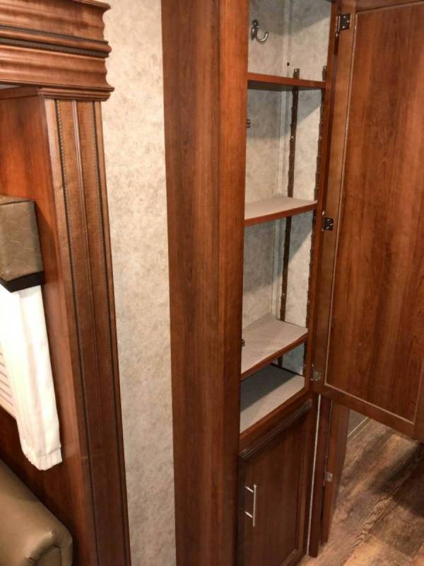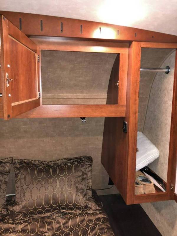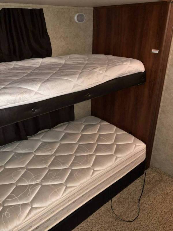 never been out in ice or snow. FACTORY Installed Highlights: * 2 - Interstate Deep Cycle batteries * J-Cube Futon not shown in photo * Thermal Pane tinted windows * 15,000 BTU AC * Hide-a-Bed * Power awning * Gel coat sidewalls * Resist ALL 5 year paint protection plan * Deleted sink and micro from OS kitchen to better use for storage OWNER Installed: * MORyde Wet Bolt kit installed on axle equalizers * 2 - Fan-Tastic vent fans with premium remote * Tire Minder sensor TM-TPMS * Winegard Pathway Satellite Antenna roof mounted with DISH receiver Would consider selling tow vechicle; 2012 F-250 diesel |