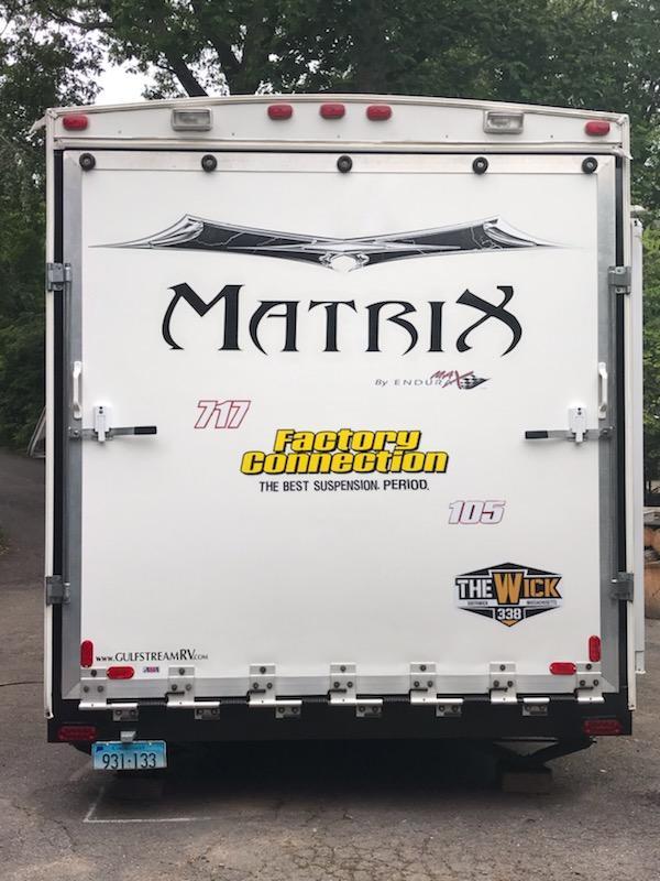 | 2008 Gulfstream Matrix Toyhauler, Skylight Above Shower, Front Gravel diamond plate Cover, Rear cargo upper power queen Bed, Dual jackknife rear cargo sofa / bed, Power Tongue Jack with LED lighting, AM/FM/CD Stereo, outdoor speakers and IPod jack, Interior 5.1 surround sound system, Skylight above Tub, Center Living Room, Dual folding interior sofa / beds, Hideaway retractable shower door, Ducted 15k BTU AC and 13k BTU heating system, Front & Rear Stabilizer Jacks, Front Queen Bed with fantastic exhaust fan, Gas/Elec. Water Heater with winterizing bypass, Double door refrigerator / freezer, Wired for TV, Crank up HD TV Antenna, 3 Burner gas stove, Gas oven, Microwave, Dual outside 20lb. propane tanks with diamond plate cover, Fiberglass gel coat Exterior, 6 Gal. Gas Water Heater, 4,5KW Generator, 100gal. fresh water tanks, 2-60 gals. black and grey waste tanks, Dual deep cycle Batteries, Center Kitchen double sink with covers, 21' checker flag Patio Awning, Outside Shower, Sofa Overhead storage Compartments, Side outside storage area Exterior loading, scare and main entry lighting, Interior LED accent lighting above cabinets, Exterior 30 Gal. fuel pump station |