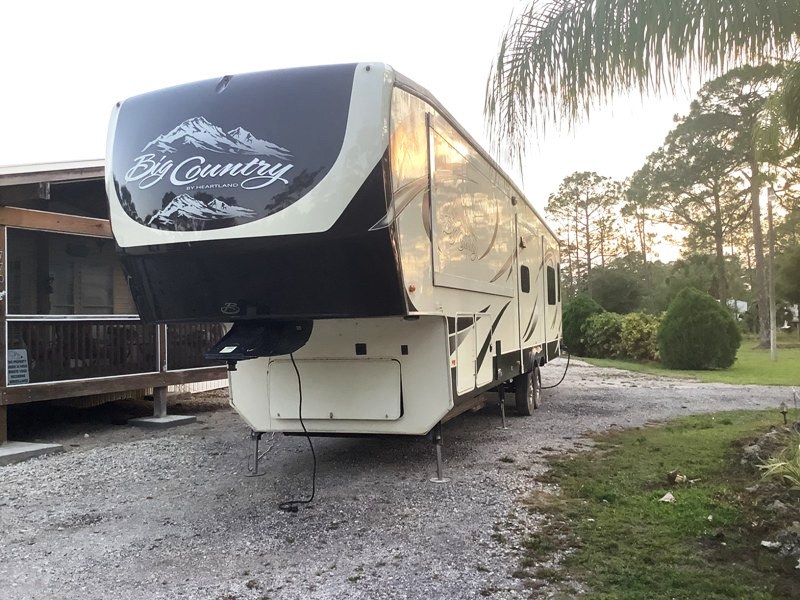 2015 HEARTLAND BIG COUNTRY 3596 RE Spacious and comfortable camper Full master with attached bathroom Queen size bed Washer and dryer Bath with shower double sink and porcelain toilet Kitchen has a nice pantry, residential fridge full sized PLENTY of storage all around Living room with a nice fireplace No rips, stains or tears on the carpet No scratches on furniture Excellent conditions Great tires 2 a/c with heat Led lights Fully automatic leveling system And awning No-touch septic clean up 4 seasons and rated for permanent living Wonderful camper. Make memories !! |