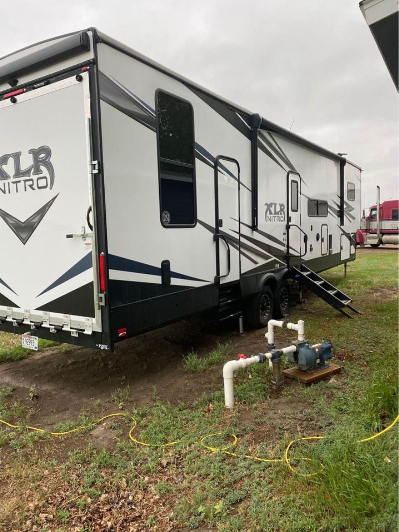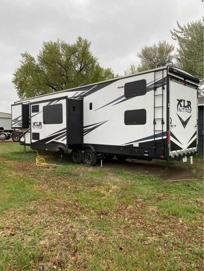 XLR NITRO 5th Wheel Toy Hauler 41 foot. Comes with generator, new tires, 2 air conditioners sleeps 8 comfortably, 12 foot garage, outdoor fuel station (30 gallon), outdoor refrigerator. Has large fenced patio area. Very beautiful inside, nice camper, open to good offer! |