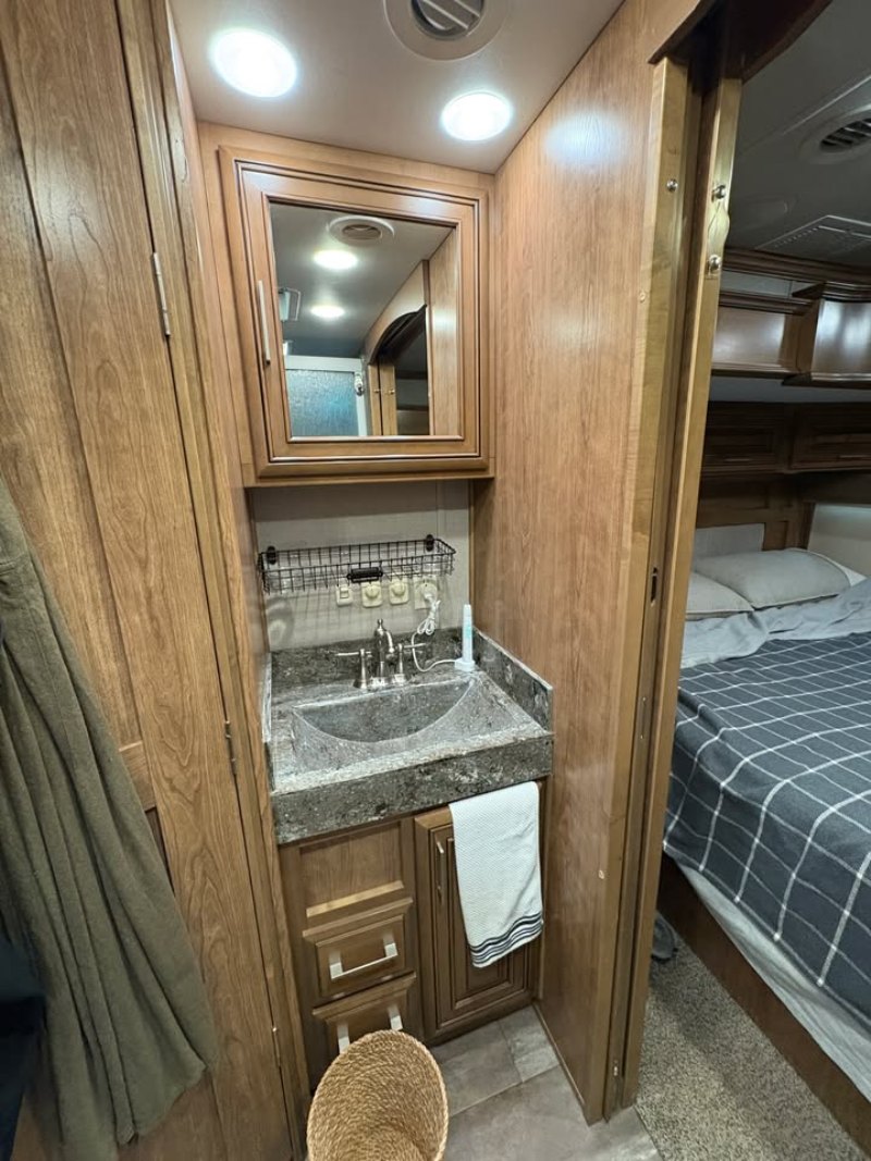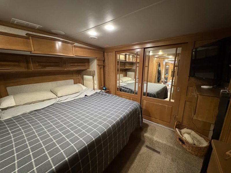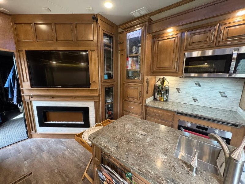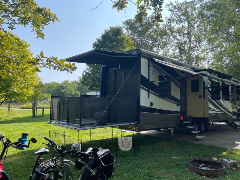 | Travel in style AND with your toys! FRONT & REAR ENTRY DOORS * 3ACs * FIREPLACE * 4 SLIDE OUTS * WINDOW AWNINGS * ELECTRIC PATIO AWNING * CENTER KITCHEN * CENTER LIVING ROOM * 3 BURNER STOVE WITH SEPARATE OVEN * MICROWAVE/CONVECTION COMBO * HOUSEHOLD REFRIGERATOR * KING SIZE BED * SPACIOUS CLOSET * VACUUM SYSTEM |