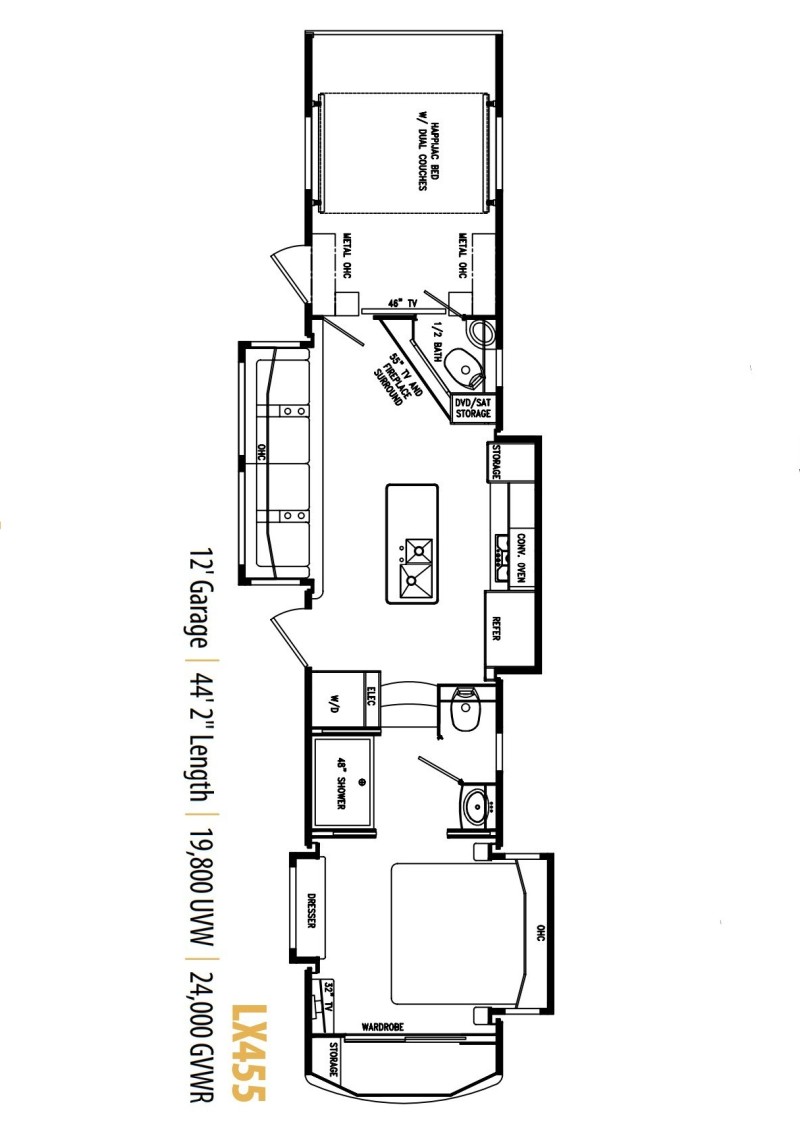 | 2019 DRV Full House LX455 w/4 Slides 44FT $90,000 |
