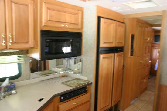 and MORE. In the Bedroom there is a Walk Around QUEEN Bed with OVERHEAD STORAGE and a WARDROBE CLOSET with DRAWERS. In the SPLIT Bath there is a Tub and Shower with a GLASS DOOR, Vanity, and WARDROBE CLOSET. The Entertainment Center has TV, VCR, DVD, CABLE, PHONE JACKS, TV ANTENNA BOOSTER, STEREO SYSTEM. The Kitchen features a THREE Burner Stove, Oven, Microwave/Convection Oven, Refrigerator Freezer, ICE MAKER, Double Sink, and CORIAN Counter Tops. DAY and NIGHT SHADES, CERAMIC TILE FLOORING, BEIGE CARPETING, and GORGEOUS UPGRADED CHERRY WOOD CABINETRY add to the STRIKING DÉCOR of this GREAT BUY!!! Asking $121,900. Private sale. |