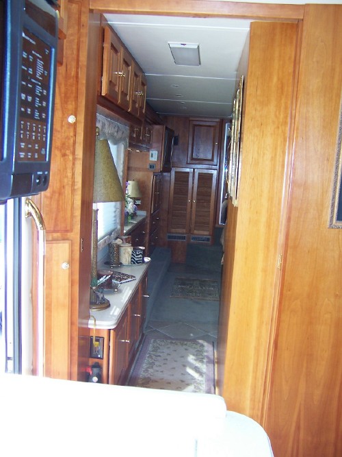 2003 SAFARI PANTHER, 41 FT. WITH 25,000 MILES & 3 Slide-outs CAT 6C 505 HP C-12 ENGINE WITH ALLISON 4000 MH 6 SPEED WORLD TRANSMISSION AND ELECTRONIC SHIFTER Tank Capacities (GAL): diesel fuel 130, water heater 10, fresh tank 100, gray tank 60, black tank 60, LP tank 80% of 39. Roadmaster Chassis, Onan 7.5kw Diesel Generator, Solar panel. Tag Axel, 8 New tires @ 22k miles. Heavy duty steel super structure, Steel cage cockpit construction, Laminated gel coat fiberglass sidewalls w/deluxe full body paint, Seamless one-piece molded crowned fiberglass roof, One piece windshield, HWH Automatic Air leveling system, Aqua hot heating w/baseboard vents, 2 AC units, that are also Heat Pumps, with 3 zone control, Keyless Mid-entry into a Ceramic tiled Kitchen, and hallway to private Bath. Carpeted dining area, living room and bedroom. Great interior storage in Raised Paneled, Natural Cherry finish, cabinets. Carpeted cabinet shelves, Matching cabinet 4 door refr. w/icemaker. Recessed 3 burner cook top w/pullout storage tray under, solid surface covers that match all countertops for the cook top and double sink, plus a pop-up counter for maximum work surface. Microwave / Convection / Vent hood unit above cook top. Free standing dinette w/upholstered chairs to match Sofa-sleeper. Ultra leather J-lounge, 6-way power pilot and co-pilot chair that can swivel into living area, plus a power foot rest on co-pilot chair, Slide-out work station at dash w/power source, 27 inch flat screen color stereo TV in living area, Home theater system w/DVD player, In dash AM/FM/CD stereo w/ remote 6 disc CD changer, CB radio, in dash compass w/ outside temp. VIP smart wheel w/control for pantographic windshield wipers, ICC and cruise, Aladdin video coach systems monitor, power sun visors, Driver & passenger side window pull-down sun screens. Alpine GPS, Trac Star in motion satellite, cellular antenna & wiring, Electric privacy drape, Pull-down pleated day/night shades throughout. Hallway to private bath & bedroom has storage above & below window. 4’vanity in bath w/mirrored medicine cabinet, glass etched door on shower, Queen Bed, huge mirrored door closet, Washer/dryer, Dresser & Armoire w/ 20” flat screen color stereo TV. Another 20” LCD TV w/built-in DVD in outdoor bay under large automatic Girard patio awning. Tons of basement storage w/ slide out pass-through tray. Power lock & unlock baggage doors. Full width Safari mud flap, Panther mural w/hidden pictures within. 5Oamp electric power cord & reel w/ surge protector, water hose reel, RVIA seal. Pressure Pro tire air monitor system. MCI protective wheel covers. Triple headed power controlled & heated exterior mirrors w/ MCI covers, MCI windshield & side cab window screens. And BEST OF ALL we have included a “good Sam Extended Service Plan” w/extended coverage for seals & gaskets until 3/14/2012. Happy to pass along more specifications upon request! This is a Coach, like a rolling Condo, that is almost new and waiting for you to hit the road, ALL of this and more for $134,500.00. Private Sale. (2003 MSRP with options & upgrades was $379,701.60) |