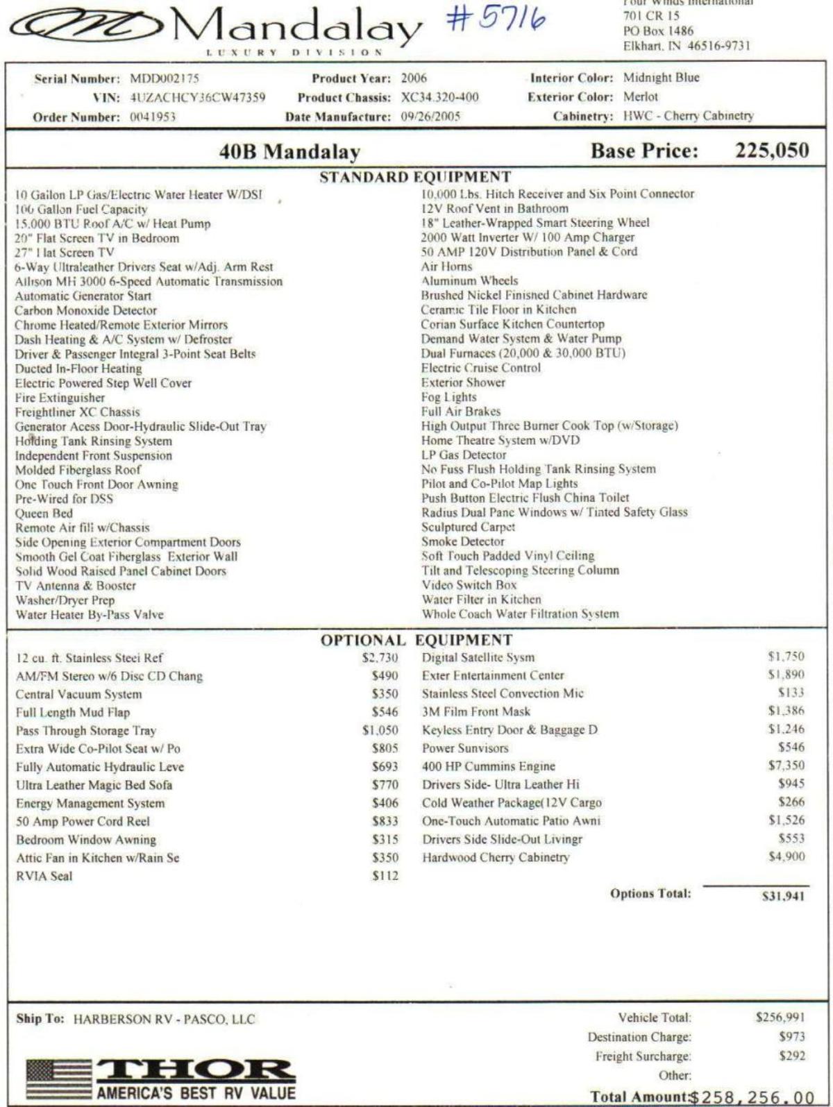 | 2006 Four Winds Mandalay 40B w/4 Slides 40ft 122,900 |
