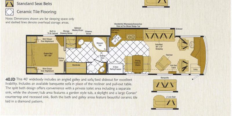 v GALLEY/DINING v Ceramic Flooring v Microwave/Convection Oven w/Range Fan v Solid Cherry Wood Cabinets v Slideout Pantry v 4 Door w/Wood Refrigerator/Freezer w/icemaker v Ventilation Fan v Water Purification System |