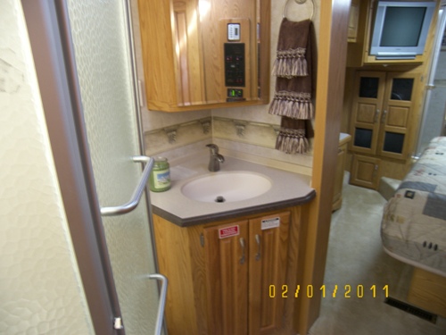 | 2004 HOLIDAY RAMBLER DIESEL, AMBASSADOR W/3 SLIDES, 330 CUMMINS W/ ALLISON 6 SPEED, 38PST, Overall length 38'5". 2 roof AC's central ducted, 2 furnaces, AM/FM/CD stereo, 24" Colored TV in living room, 20" Colored TV in bedroom, New 36" tv in dining room, TV Antenna booster - new automatic lock-in satellite - VCR/DVD Home Theater System - Microwave/Convection Oven - Corian counters thru out - 3 Burner Propane Gas Cook Stove w/cover - new kitchen faucet w/ sprayer - 4 Door Refrigerator/ Freezer w/Auto Ice Maker - 2 yr old Splende Washer/Dryer Comb - 2 yr old Queen Sleep# Bed - Skylight over shower and 1 Bathroom Sink - Separate bath w/ porcelain toilet, sink and cabinets - 1 Leather Couch makes into futon type bed, 1 Fabric Couch which makes into Queen size bed - Day/Night Blinds - 2 thermostatic controlled roof vent fans, 1 manual.- Both Captain Chairs are 8 way power w/passengers reclining with foot rest - automatic front shades, manual side shades - Cruise Control, Back-up Camera, New Hydraulic Leveling System, - Tilt Wheel - Onan 7500 Diesel Generator - 2000 Watt Inverter - 8 Air Bags Assisted Suspension - Electric automatic Patio Awning, all windows have awnings - New canvas over all 3 slides - Basement 1 full pull-out pass thru - 1 double pass thru storage - Extra tripod & satellite dish in storage - THIS IS NOT A NEW MOTORHOME BUT IS IN EXCELLENT CONDITION!! The Rv is being sold as is in San Antonio, TX, with a 1 yr paid GOOD SAM'S CLUB warranty, which covers everything major (inside & outside) according to policy; It has a $500.00 DEDUCTIBLE. Sleep Member Bed. New Jacks. New House and Chassis Batteries. | ||