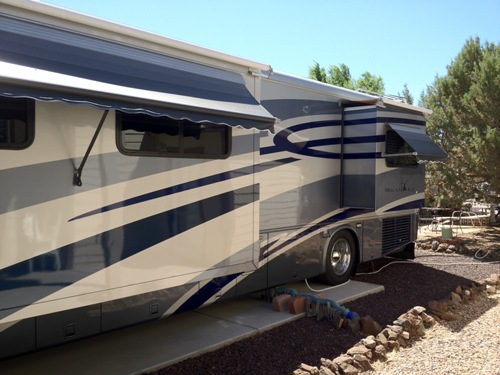 the coach new with lots of extras." "We had Newmar installed all new siding and repainted the coach in 2008 due to defective gel coat. We also had them install new carpet and replace all rubber seals around slideouts. The coach when not being used is stored in a climate controlled building in Tucson, AZ." |