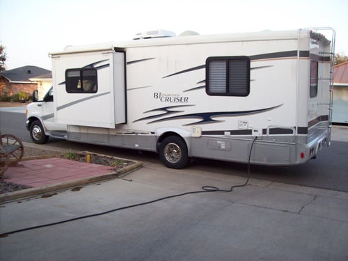| 2005 BT Cruiser 28 ft 1 Slide Model M5270. Very low miles @ 14,000. Ford VI0. Coach has new tires, new Flat screen TV, new custom cabinets in bathroom, and remodeled cabinets over the sofa, drawers in the bedroom have also been remodeled, desk was added and the new floors are a vinyl wood grain. The coach is in excellent condition. | ||