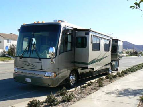 | All New Michelin Tires, New Batteries As Of July 2010. This Is An Exceptional Coach And AN Exceptional Value. It Has Been Taken Care Of Meticulously And Has Had No Pets, Smoking Or Children In It. It Has Beautiful Sculptured Carpet And An Open Airy Floorplan. Also Has 2 Leather Euro Recliners With Matching Ottomans, Sofa Bed, Tile In Entry, Kitchen And Bathroom, Beautiful Summer Maple hardwood Cabinetry, Coffee Table, Custom Built In Bookcase And Sofa Table. There Are 2 Sinks In The Bath Area And A Top Of The Line Electric Porcelain Commode. SOME STANDARD EQUIPMENT FEATURES Include, 4 Slide outs, 400 Cummins Spartan Chassis, 6 Speed Allison, 7.5 KW Onan Quiet Diesel Generator, 2000 Watt Inverter, Hydraulic Leveling Jacks, Leather/Vinyl Heated Front Seats Wit Power Lumbar Support, 2 - 32in Samsung HD TVs with full automatic satellite dish on roof, 6 CD Changer, Weather Pro Automatic Patio Awning, 3 Burner Stove, Queen Bed, Plus A Very Long List Of Other Luxury Mountain Aire Standard Features. OPTIONS AND UPGRADES Include, Power lock Arms On Slideouts, Hydronic Zone Heating System, Trip TEK Travel Information, Keyless Entry, Auto Gen Start Low Battery And Temp, KVH Automatic Satellite, Pass Through Storage Tray, Rear Ladder, Fold Down Shower Seat, Assist Handle In Shower, One Piece Splendid Washer/Dryer, Advantium Microwave/Convection Oven, 4 Door Norcold Refrigerator With Ice Maker And Water Dispenser In Door, Norcold Refrigerator/Freezer in Basement Slideout, In Motion Satellite Dish, XM Satellite Radio, All Window Awnings, All Window Sunscreens, Custom Fitted Wheel Covers, Water Softener And CB Radio, Transferable Warranty. | ||