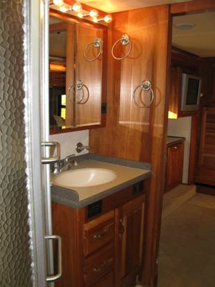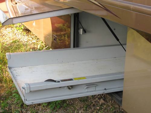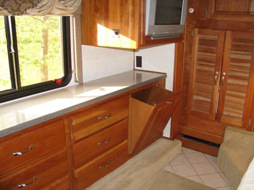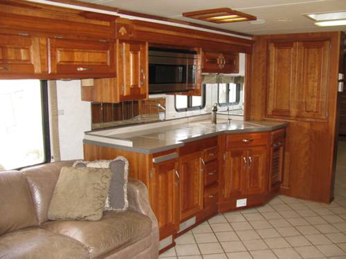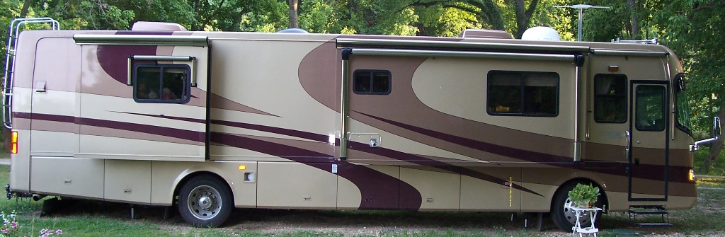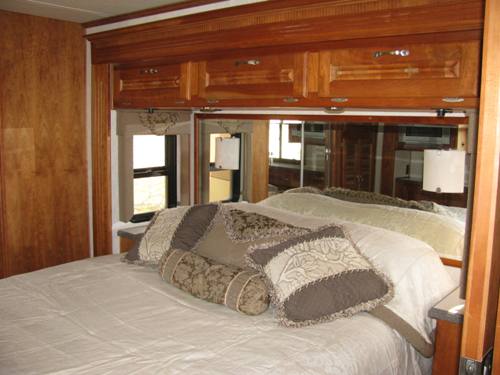 nice and smooth. On the inside there is lots of storage. Deep cabinets above the bed with a large storage area under the bed. There is a clothes hamper next to the washer/dryer. In the bathroom you have storage over the toilet and under both of the sinks. The kitchen area has a pantry next next to the sink with storage under the sink with storage on the wall under the kitchen table. The table will pull out to seat 4 people comfortably. The living room has cabinets above both sofas. One sofa is a Hide-A-Bed and the other is a leather Easybed. There are small cabinets next to the sofas than serve as end tables. It can sleep 6 persons. The TV has been upgraded to a flat screen 32". It is equipped with an energy management system and for your safety there is a power stepwell cover. In the basement you have 2 Full Pass-Through Storage (one with slide-out) and a power cord reel for that heavy electric line and lots of other storage. "We have lived full time in this unit for 8 years. It is very comfortable and roomy. We are non-smokers and purchased this unit in 2004. We can no longer travel due to health reasons and need to sell it. It has lots of extras on it." New House batteries and new Chassis batteries Sept 2013 Re-sealed on top Sept 2013 Tip-Top Condition ...... Turn Key Ready "Happy traveling and be safe." |