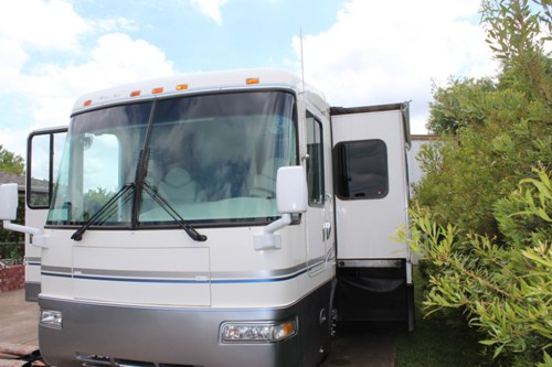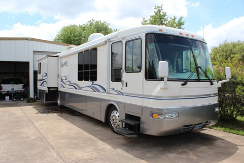 | 2002 Rexhall Rose Air, Rexhall's top of the line model. I am the original owner of the coach and it has always been stored indoors. The gel coat, paint nor decals have any fading, chipping or peeling. There are no cracks, etc. in the windshield or any other glass. The coach has passenger and drivers side doors, in-motion satellite, auto awning, 3 tv's ( one in the basement), cb radio, brake controller for trailer, trailer hitch, rear ladder, etc. The entire body and roof is fiberglass, no rubber roof. It also has a sky-light in the shower, convection microwave, oven and stove top. A 2000 watt inverter and 7500 watt diesel gen set. The living room slide is much deeper than most manufactures offer. The double door refrigerator has an ice maker. The basement storage on this model is awesome, one bay actually goes from side to side. The starting batteries were replaced 4-1-13 and the chassis batteries are about 2 years old. The front windshield is really big, giving an unobstructed view of the road and scenery. I also have custom made windshield and both front door glass covers. They attach on the outside when you reach your destination. They allow you to see out while restricting the view from outside. All maintenance has been performed per the manufactures checklist. | ||