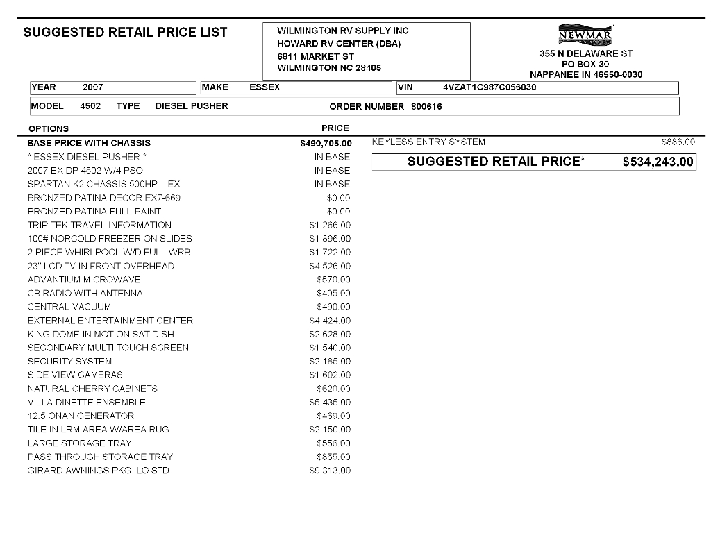 | 2007 Newmar Essex Brochure PDF with Floorplans and Specs |