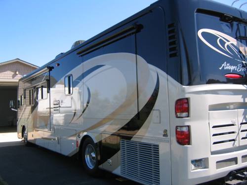 custom windshield & tire shades, 43,225 miles. NEW ITEMS: 23 cubic ft. residential refrigerator, 40" LED TV in front, Winegard Traveler satellite dish, 3000W True Sine inverter, AGM Lifeline batteries, chassis batteries, Koni shocks, hard-wired surge protector, Diamond Shield. She is "ready to roll" and BEAUTIFUL. |