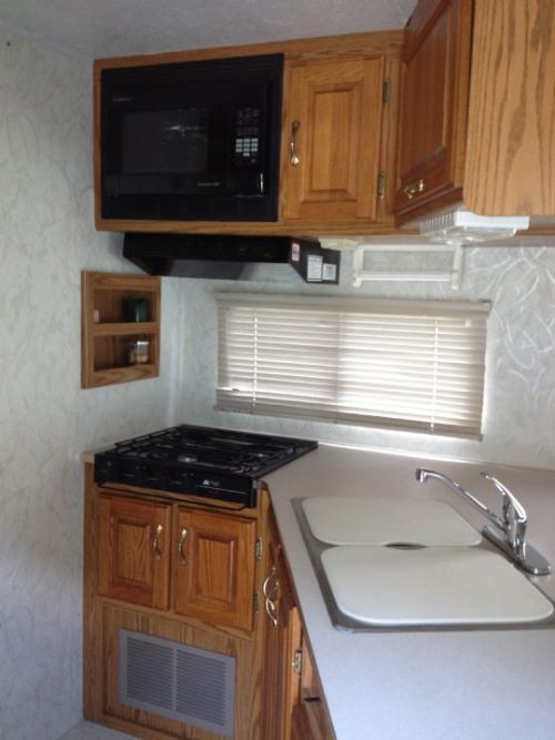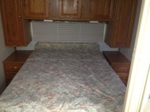queen bed and full bath; double bed over driver