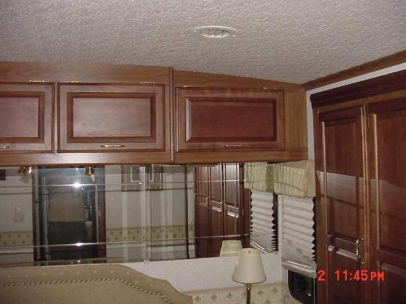 Rear Ladder Motor Home Jacks Freightliner Chassis Gas/Elec. Water Heater w/DSI Front & Rear Stabilizer Jacks Ducted AC Booth Dinette Remote Heated Mirror Leather Front Seats - driver side 6way Jackknife Sofa Electric Patio Awning Double Slide/ 2new Toppers Mirrored Wardrobe Ice Maker in Freezer Composite Counter Tops aluminum wheels Grab Handle Split Bath w/Shower Deluxe cherry cabinets Tile Floor in Kitchen Tile Floor in Bath Skylight above Tub 2 Door Refrigerator Swivel/Recliner Chair Diesel Generator Solar Charging System New High-Def flat screen TV in bedroom |