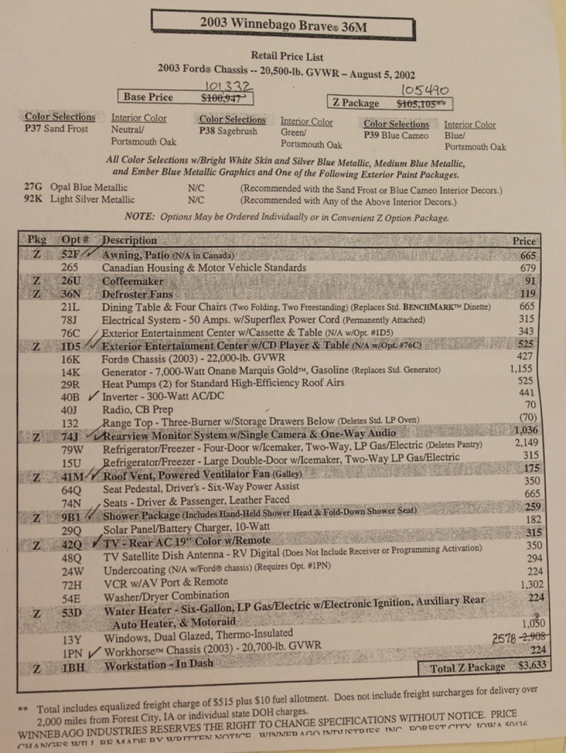 | 2003 Winnebago Brave Brochure | Super Size Slide Show |