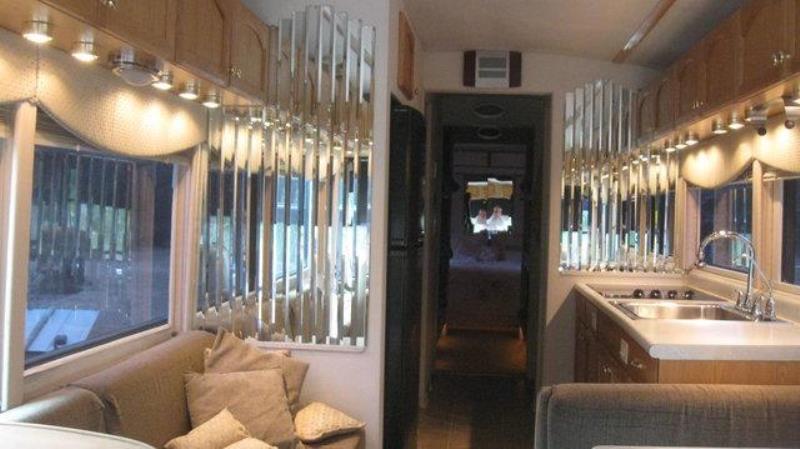 for 30 years without being started. The interior of this coach has been nicely done with a sofa and dinette; galley kitchen with a 21 cu ft refrigerator, microwave and this coach has a stacked washer dryer installed. The generator is a 17.5 KW Kubota; it has 3 roof air conditioners, a Hydro Hot water system which provides heat and continuous hot water. No expense was spared in doing this bus conversion, as you can see from the photos. The exterior was updated by raising the roof 8 inches and adding updated front and rear caps to the original stainless steel/aluminium frame/body structure. All windows and windshield have been replaced to give a clear view. Exterior is also equipped with a 22ft manual release awning and a tow hitch. Rear bay is completely empty for storage. Middle bay houses tanks of 100 gal grey water, 100 gal black and 100 gal fresh water. Front bay is half used for the generator/power. Cooling is provided by 3 roof mounted Carrier Air V Recreational Vehicle Air Conditioners. Other amenities include: full driver instrument panel, matching driver and co-pilot seat, electric powered full driver/passenger seats, powered sun/privacy visor, 21 Cubic foot Admiral refrigerator with ice maker, large standard home kitchen sink, 4 burner Frigidaire cook top, AC/DC lighting throughout the coach, 4 sliding pocket doors, GE Spacemaker electric washer/ dryer, half size shower/bath tub closet, 6 adult size bunks that are currently used for closet and storage but can be made bunks by putting back the mattresses back in, master bedroom is furnished with a queen size bed. In 2014, over $11,000 in documented mechanical updates and servicing was professionally completed. Work included; extensive updating and overhaul of the air-ride system, cylinder head work, new engine air filtration system, replacement of engine cooling fans and much more. Professional appraisal completed in April 2014 for over $88,000. A death in the family forces the sale of this truly rare and unique motor coach |