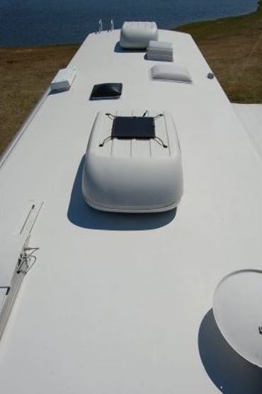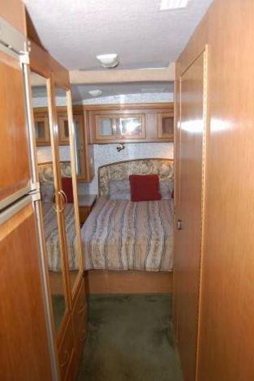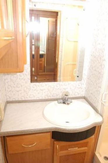 and ready for travels. Built on a Ford chassis and powered b a Triton V-10, auto Trans, 70,000 miles, 5 KW generator, Hydraulic leveling, rear view monitor, large awning, dual A/C units, like new tires, tow hitch, rear ladder, driver's door, lots of basement storage. The spacious interior feature a large slide-out in the galley & living room area, carpet & wood flooring, a sleeper sofa W/3 reclining captain chairs, a lamp table, front TV, with a manual satellite dish for entertainment. The galley has a microwave, nice cabinetry, corian countertop, db sink with filtered water dispenser, refrigerator, 3 burnergas stove & oven, dining table W/chairs. Nice bathroom with vanity & large shower. The bedroom has a queen bed with closet and drawers on both side of the bed, additional storage under the bed and so much more. Clean non smokers, no pets and ready to travel. |