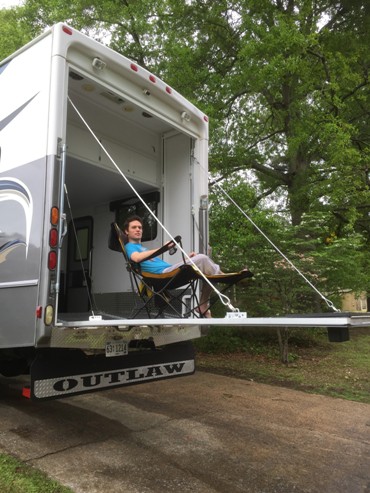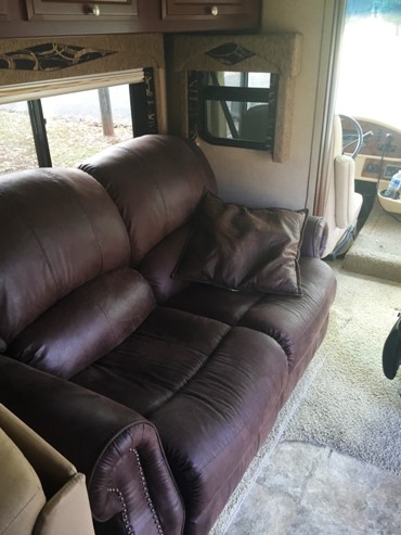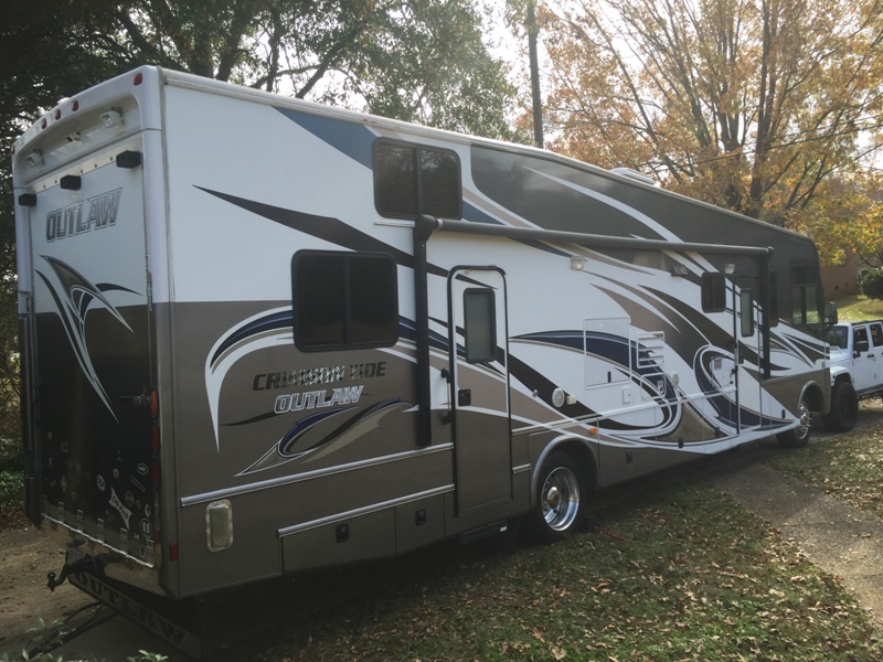 | 2012 Thor / Damon Outlaw 3611 toy hauler, many extras including 5 TVs, rear patio, leather recliner, reupholstered and padded recliner, one large slide, excellent condition (except needs front Lippert leveling jacks). 17,500 miles, mileage will go up as I drive it often). V10 Triton gas. I will deliver with deposit. |