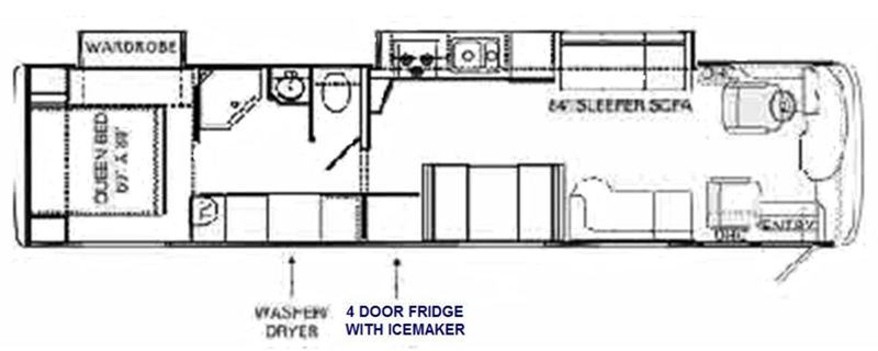 Kitchen Amenities Include: Corian Counter Tops, Stove, Microwave, 4-Door, Fefrigerator/Freezer, Sink, Booth Dinette. Living Area Features: 38" Flat Screen TV, Surround Sound, DVD Player, CD/Stereo, Stationary Automatic Dome, Cable Ready, Sofa Bathroom Amenities Include: Corian Counter Tops, Shower, Washer/Dryer Additional Options Include: 26" LG Flat Screen TV, Backup Camera, Power Mirrors, Fog Lights, Hitch, Tow Package, Cruise Control, Smoke Detector, 40,000 BTU Furnace, 7.5 KW Onan Diesel, Generator, 2-Way Water Heater, 6 New Tires, 6 Batteries. |