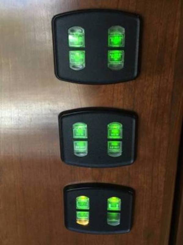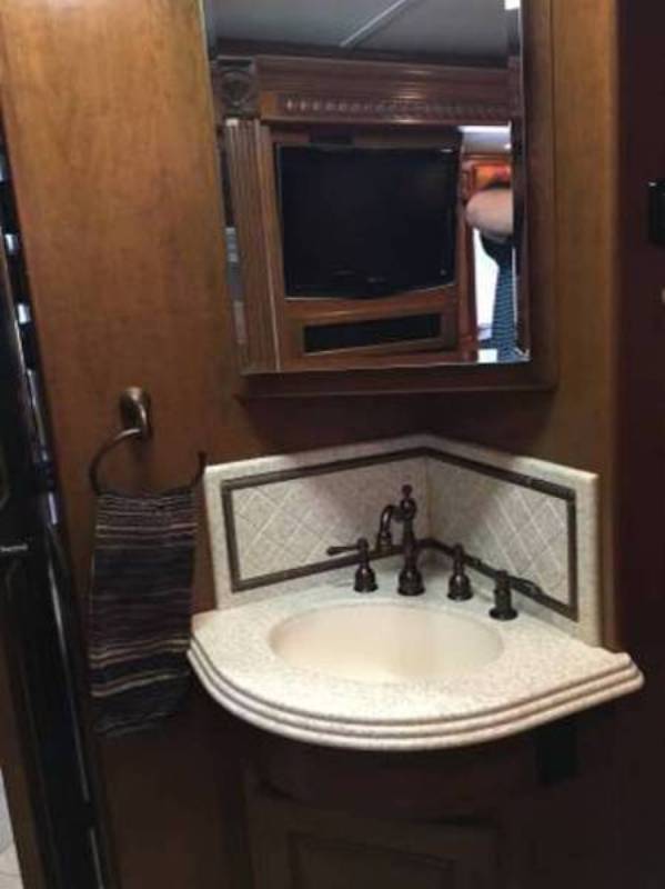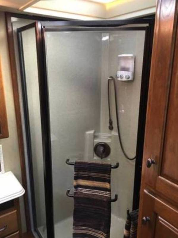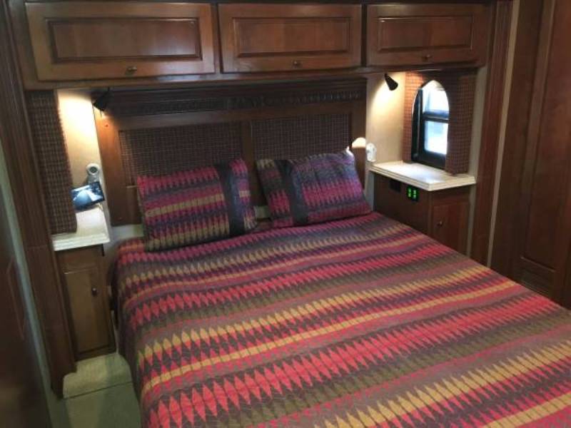 Central vacuum. Girard automatic awning with wind retraction. Has desirable forward kitchen layout with large LCD TV. Residential side-by-sde refrigerator/freezer. Sleep Number Queen bed. Solid cherry wood cabinets and trim. Central vacuum. Other options too numerous to mention. |