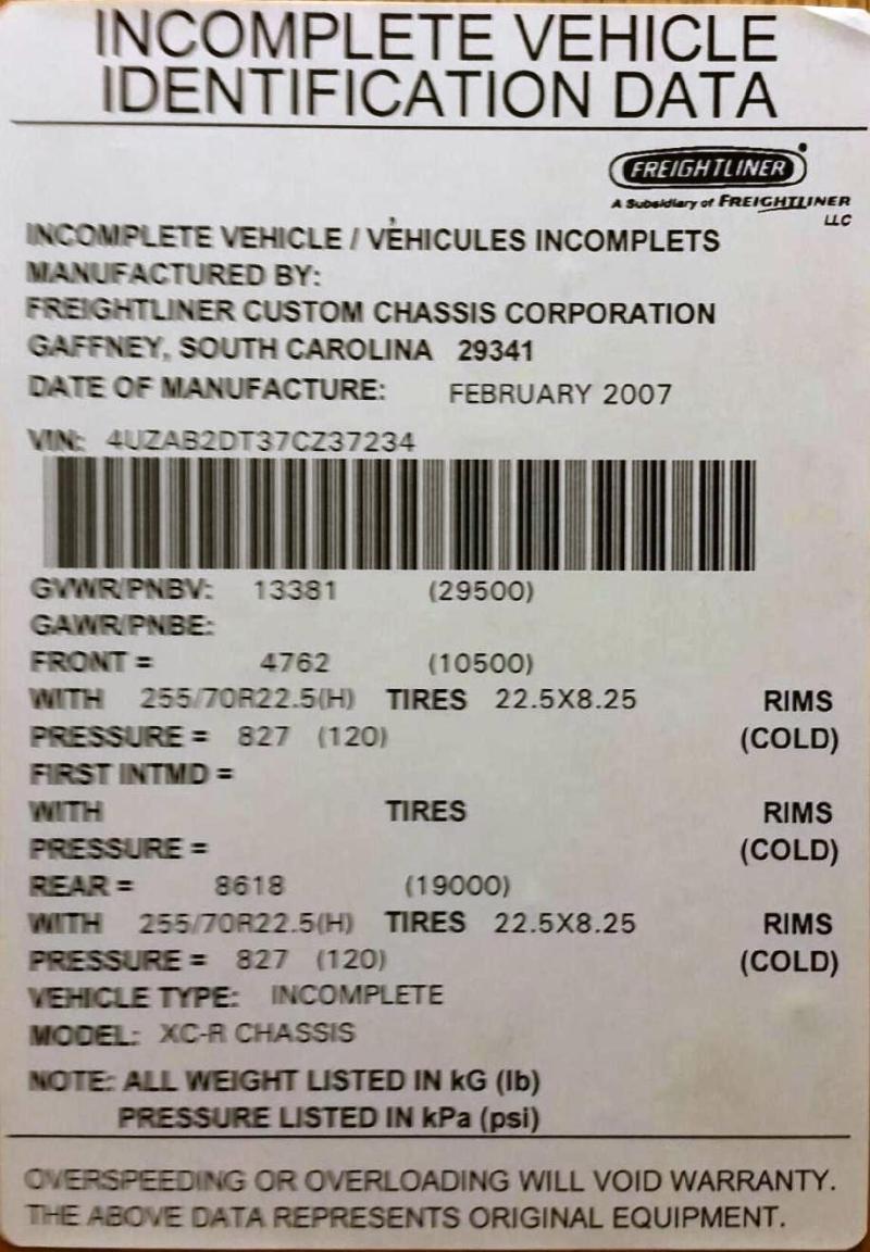 1011-07 Freightliner Chassis * Cummins 350 HP Triple-Slide (Full Wall Slide) * 13,600 Miles |