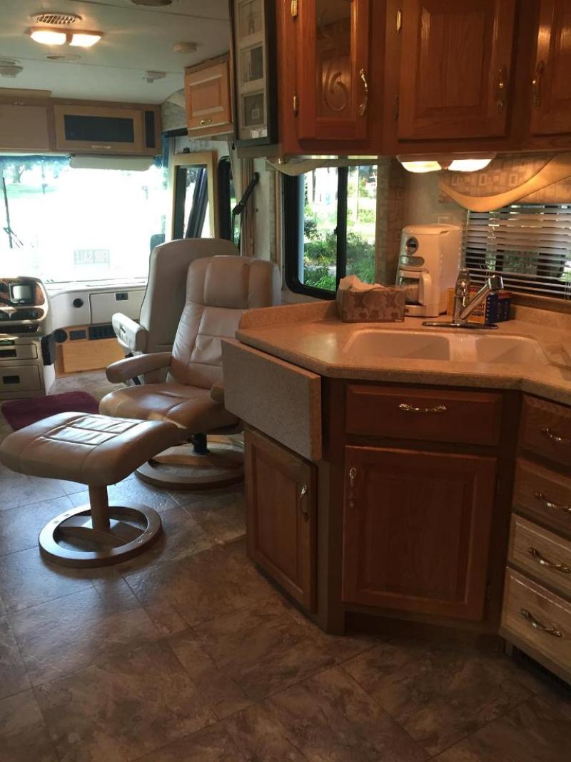 2004 NEWMAR, KOUNTRY STAR (MODEL 3702) Freightliner Chassis: 330 HP Cat Diesel w/Engine Brake, 6 Speed Allison Auto Trans. (68,800 Miles) VERY WELL MAINTAINED, STORED INSIDE WINTER MONTHS THIS MOTORHOME IS PRICED TO SELL AND COMPLETELY READY TO TRAVEL!! (THIS IS A TRUE TURN KEY UNIT) Exterior Features: Note Key Below (New addition to RV, or Recent Replacement Maintenance) * 2 driver side slide outs * Outside shower/wash-down * 2-13,500 BTU roof air conditioners * 4-HWH hydraulic touch control leveling jacks (right rear jack replaced 2014) * 2-exterior side mirrors w/remote control & defrost * Sunbrella 9,000 series 18 ft. awning * Double pane windows * Full width storage bay * Storage bay lights w/heat in water bay * 3-Sunbrella window awnings (1 new addition, to original 2, 2013) * Rear camera w/monitor (camera replaced 2014) * Engine block heater * 10 gal LP/Elec hot water heater (element replaced 2014) * Sunbrella exterior window privacy covers for driver side, passenger side, and front windshield * Interior front privacy curtain * 3-bay storage drawers * 2-6 volt house batteries (replaced 2015) * 2-12 volt chassis batteries (replaced 2013) * 800 watt power inverter (new addition 2014) * 55 amp power converter w/charger (replaced 2014) * 50 amp Surge Guard wired protector (new addition 2014) for 50 amp service * 2-slideouts with topper awnings (larger topper replaced 2013) * 6-Michelin tires (replaced 2013, about 18,000 miles on them now) * Front brakes and drums (replaced 2014) * Radiator and transmission cooler (replaced 2014) * Steering stabilizer (new addition 2013) * Power step and controller (replaced both 2014) * Powered TV antenna (replaced 2014) * Remote tire pressure/heat sensors monitoring system (new addition 2014) * Wheel covers to protect tires from sunlight * 7,500 watt Onan Quiet Series Diesel Generator (580 hours) * 100 gallon fresh water tank * 60 gallon black water tank * 40 gallon gray water tank * 30 gallon LP tank * Water filtration system * Roof ladder (replaced 2015) Interior Features: Rollaway Fireplace/Heater, w/remote (optional item - sale price $175) * Leather 6 way power driver/passenger Flexsteel seats w/power passenger footrest * Interior driver and passenger side sunshades * AM/FM/Sirius radio w/CD player, remote and Blue Tooth (new addition 2013) * DVD & VCR players * CB 40 channel unit * Entertainment center control console (replaced 2013) * Dining table w/self-stored leaf & 4 chairs, with custom made wall desk assembly * 32” Sony LED TV w/remote for main cabin (new 2013) * 24” Toshiba LED TV w/remote for bedroom (new addition 2013) * Central vacuum system with hose & attachments * Corian countertops in kitchen (double sink) & lavatory * Raised wood panel 2 door, 8 cubic feet Dometic refrigerator/freezer w LP/Elec auto changeover * 2 Quiet Fantastic Fans for kitchen and bathroom (kitchen is rain sensitive) * GE Profile Convection/Microwave oven (replaced 2014) * 3 burner stove * Automatic Blue Streak metered system for sanitizing porcelain toilet black water * Full corner shower w/glass door and skylight * Day/night pleated window shades * Leather Euro recliner w/ottoman * Flexsteel fabric convertible bed sofa * Full sized Queen, very comfortable, bed |
