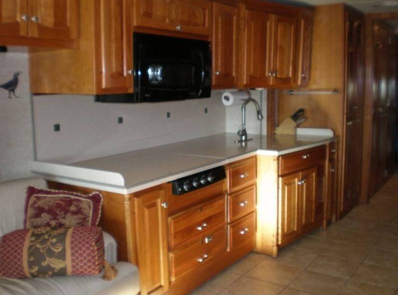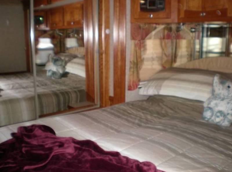 | One owner, 4 slides, non smoking, no pets, leveling system, 2 air conditioners, hydro hot, emaserator sewage pump, basement slides, refrigerator/freezer on slide, outside entertainment center, satellite dish, awnings and slide toppers, back up camera, heated electric mirrors, motorized captain and passenger seats, sofa bed, 2 lazy boy recliners ( all leather), tile floor, carpet in bedroom, cherry cabinets, 4 door fridge with ice maker and water on door, 3 burner stove, microwave/convection oven, dishwasher, washer and dryer, desk dinette with chairs( table is movable), 3 TV's, king bed, lots of storage in and out. Aluminum allow wheels, trailer hitch, gravel skirt, ladder. |
