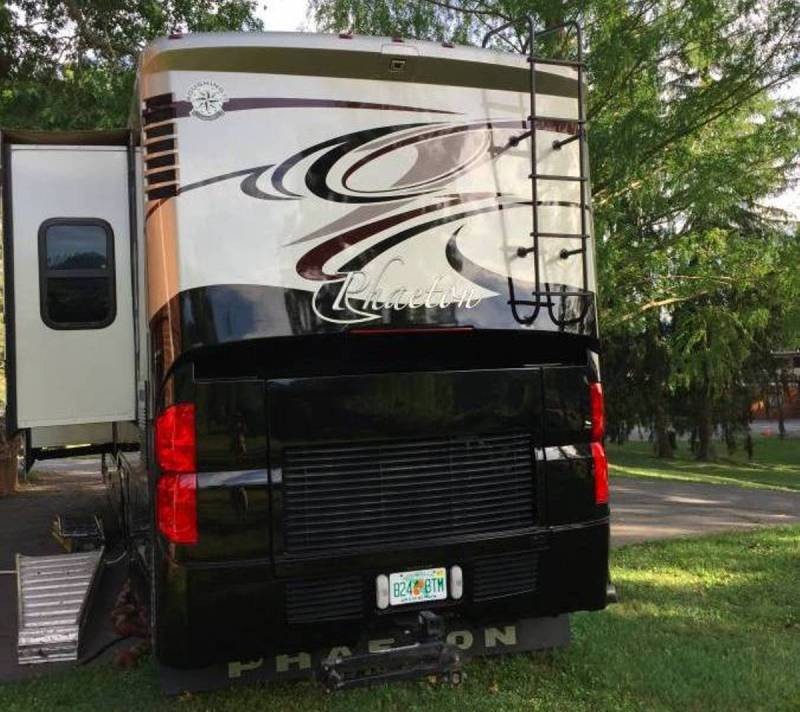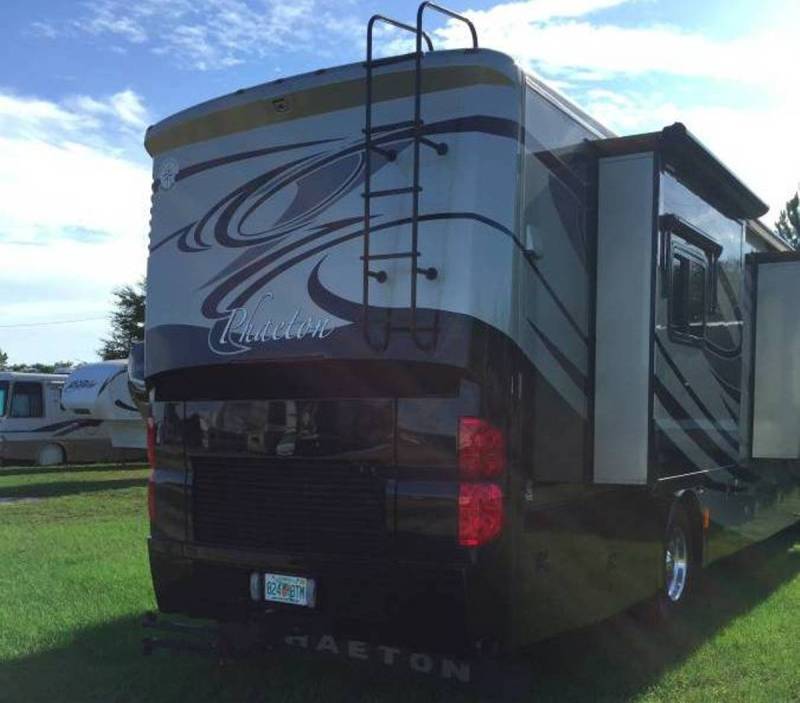 2012 Phaeton Motorhome, Class A by Tiffin Mileage: 30,216 Model: 40QTH Freightliner chassis, Cummins ISC engine, 380 HP / 1250 LB Torque Overall length: 40 ft 5 inches Raised rail chassis frame. Air ride (4air bags). Aluminum wheels Allison 3000 MH 6-speed automatic transmission. Emergency start switch. Fuel tank: 100 gals - dual fuel fill Fresh water tank: 90 gallons Gray water tank: 70 gallons Black water tank: 50 gallons LPG tank: 35.7 gallons Trailer hitch capacity: 10,000 lbs Color: Sunlit Sand Capri fabric interior High gloss solid English Chestnut cabinet doors and drawer fronts Stacked washer / dryer Freestanding dinette with computer workstation Two leather euro recliners Central vacuum cleaner Tankless gas hot water heater Spotlight Two Hadley Air Horns Two exterior slide trays in basement Three low profile roof A/C with heat pumps 10.0 KW Onan manual slide-out Generator Satellite-ready radio In-dash sterro / navigational system Queen - Memory Foam mattress Ultra leather air coil hide-a-bed sofa sleeper Three burner gas cook top Convection / microwave oven 32 inch LCD TV ( Living room and bedroom) All-electric residential refrigerator Tankless gas hot water heater Automatic satellite dish - no receiver, HD ready Custom, six-door built-in cabinet behind the two eruo recliners 2000 watt inverter with 100 Amp converter & transfer switching Optional: 2002 Saturn tow car available with the RV at a negotiated price. also available are two bicycles with carrier in a package deal. |