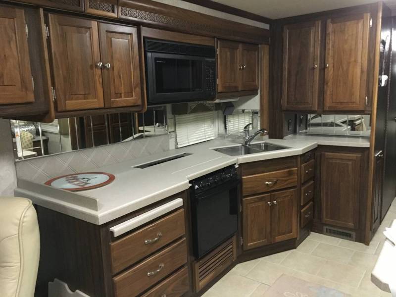 Excellent Condition - Travel Ready Super Clean Non-Smoking This Coach is ready to go Garage/Storage Kept Exterior Excellent Condition Patio Canopy Automatic Awning Entrance Door Awning Automatic Levelers Dual Air/Heat - Roof AC Furnace Front Furnace Rear Engine - 350 HP Caterpillar Generator - 7500 KW All plumbing and fixtures in great working order Built in Vacuum TV - 2 with Satellite - front and bedroom Cable Ready Refrigerator with Icemaker Washer Dryer Combo Queen Bed Closets Private Water Closet with Sink and Cabinets and Drawers Separate Shower with Bench Additional Vanity Sink area in bedroom Window Day/Night Shades Stove - 3 burner gas stove and oven Microwave with Convection Lots of cabinet storage Dinette area with 4 chairs Office Desk and Leather Recliner Dual Euro Recliners with Ottomans Under Belly Storage Camera Monitor- Rear New Inverter Tires - less than 2000 miles on Michelin Tires Batteries - New Coach is maintenanced yearly - have last 5 years of records Freightliner - Tuneup Maintenance Spring of 2016 |