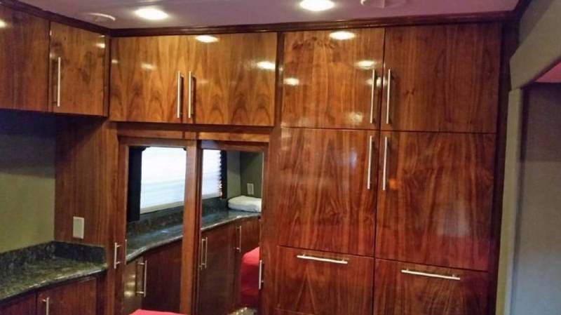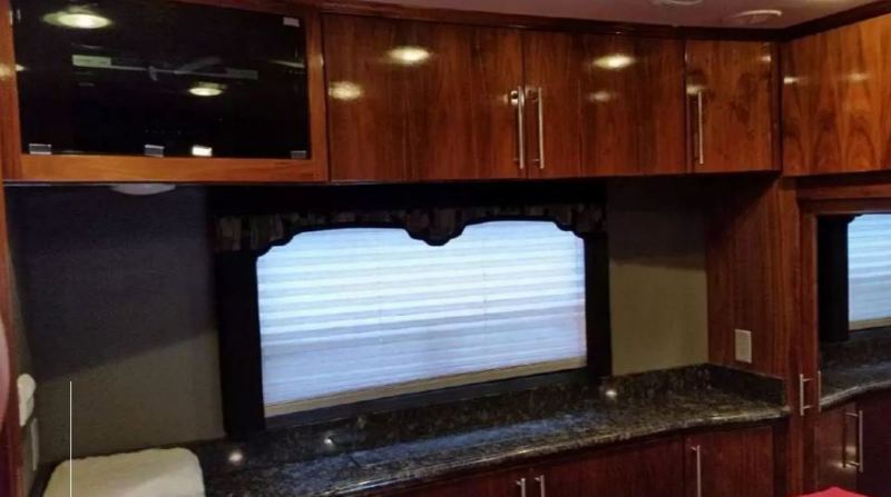 on to anyone who may be interested. Thank you. You do not need a CDL license to drive this coach, it is titled as an RV. The Silver Crown S series truly is the new benchmark in luxury motorcoach design and craftsmanship. The meticulous engineering is evident in the impressive exterior styling as well as the strikingly luxurious interior. Only 56,500 miles. Forty Five Foot Length, Engine: Detroit 515, 60 Series Motor, Transmission: Eaton Fuller 12 Speed, Auto/Manual, 2 slideouts on drivers side. Appliances and accessories: Electric glass top cooktop with touch controls, stainless convection microwave, high definition tracking satellite system, second high definition satellite receiver in bedroom, Sony 26 inch LCD outside TV / stereo, Sony 32-inch LCD front TV, Sony 26 inch LCD TV in bedroom, GPS navigation system with color backup monitor, cobra CB radio, undermount deep bowl stainless kitchen sink, residential style kitchen faucets. Bathroom: Cosmetic vanity lights in bathroom, fantastic fan, neyo round shower with granite wall & marble floor, porcelain toilet residential macerating toilet, granite countertop, residential style bathroom faucets, vitreous china sink, stackable washer / dryer, LED lighting. Bedroom: Sony 26 inch LCD TV / DVD / stereo, Sony 900 watt surround sound, universal remote, high definition satellite receiver in bedroom, bedroom slide out, queen size memory foam mattress, LED lighting. Body construction: Laminated gel-coat fiberglass walls with aluminum frame, 3 inch laminated floor system with 2" foam insulation, crown foam insulated aluminum framed laminated roof, fiberglass molded aero front and rear caps, 4 Big Foot auto hydraulic leveling system, radius exterior corners, full body paint with high gloss finish, mudflap with stainless steel logo, fully undercoated undercarriage, insulated baggage doors with power locks, combination pantograph and side swing baggage doors, 30,000 pound hitch. Electrical: 2800 watt inverter with 12 Lifeline batteries with auto Gen start, 12.5 KW Onan quiet diesel generator on slide tray, power cord reel in rear storage box, curbside porch light, LED lighting, three fantastic fans, all electrical appliances, surge guard surge protection, lighted grab handle, 50 amp distribution panel. Interior: Crown molding above cabinets, natural black walnut contemporary cabinetry, residential style stainless steel sink in kitchen, residential style kitchen faucet, fantastic fan, color-keyed cab interior with wood accents, custom window shade package, padded walls and ceiling. Living room: Oversize entry door in entry step, granite dinette table with 2 swivel rolling chairs, and black leather bench seat, granite lighted stepwell, LED lighting system, heated granite floor throughout, Italian Leather custom sofa, custom captains chairs with heat, walkthrough cab area with cabinetry, 900 watt surround sound, universal remote control system, 13 foot slide out. Plumbing: Heated and enclosed holding tanks, 180 gallon cap., manifold plumbing system, diesel powered heating and hot water system, water hose reel in holding tank compartment, wash station at service compartment, holding tank rinsing system, water filter, super quiet water pump. Exterior: Herh double pane windows with dark limo tinted safety glass, extra width entry door and entry step, safety entry grab bar, keyless remote entry system, Girard slide out awnings, Girard automatic patio awning full length of coach. To see the new coaches being made of this type, go to: www.renegaderv.com click on motorcoaches, then click on IKON. To buy a new one will start at: $700,000. Your saving a lot of money, plus no capital gains on sale of your home, and you do not pay any sales tax, by trading. If you are interested in trading or purchasing my coach, please email me for interior pictures. |