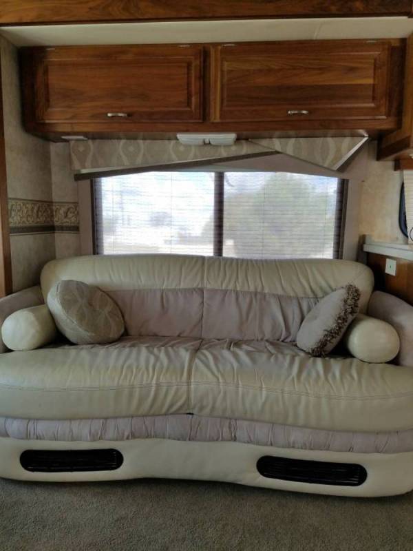 | 2005 Fleetwood Revolution 38X LE, 400 hp CAT diesel, less than 30K miles, 3 slide outs, upgraded HD TV'S, upgraded HD Satellite , new batteries, 1 owner, non smoking, no pets, 4 door Norcold Frig/Freezer w/ice maker, Queen Bed, 2 in 1 combo w/d, all leather interior. |