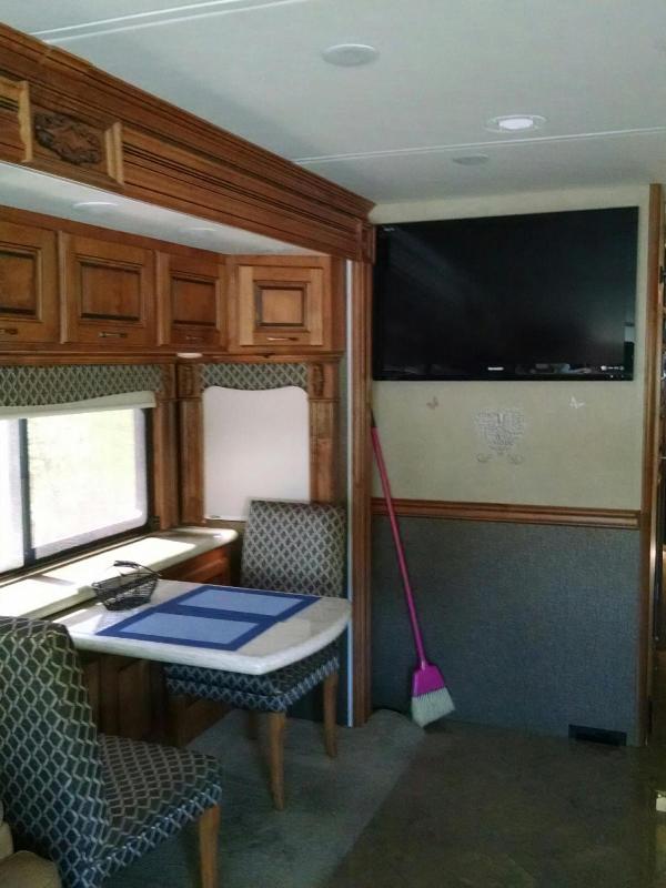 | one full wall slide, 2 other slides. 1 1/2 bath, dinette & 4 chairs, residential refrigerator/freezer, stacked washer & dryer, king size number bed, one owner, nonsmokers, no pets, |