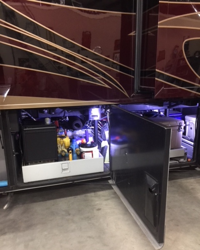 ... 2014 Newmar King Aire, 45 ft. Diesel Bus. Full Wall slide, non-smoker, for sale by original owner. Custom Built and designed at the factory in Indiana. This is not just an assembly line model. We chose the floor tile, the furniture design and redesigned the master bath and changed some of the outside colors. LED lights around both patio awnings and under the coach. This is a 45' luxury coach, 600 hp Cummins ISX with Allison 6 speed transmission on a Spartan K-3 chassis, also has the Vorad cruise control and steer assist. The coach has 16 Batteries which allow you to run the middle air without running the generator. The 12,500 watt diesel Onan generator will run the whole coach and all three air conditioners. Coach has 2 electric slideout storage trays and 1 manual one, combination freezer/refrigerator on outside slide out tray. Fully automatic hydraulics and air leveling system, washer/dryer, dishwasher, 6 solar panels, 3 large TV's inside coach and 1 outside. Large master bath with large closet and lots of storage cabinets and drawers plus 1/2 bath in mid coach. Keyless entry, security camera inside and outside, window graphics and the list goes on and on. Way too much to list. This is a must see coach which has always been stored inside when not in use. Hand washed and dried by myself and my wife after each trip before putting in storage. The coach will run, drive and perform as well as any Newell or Prevost at about one third of the price of those coaches(nothing against Newell or Prevost). The MSRP on this coach was just over 1 million dollars new. The coach has right at 39,000 very easy miles. |