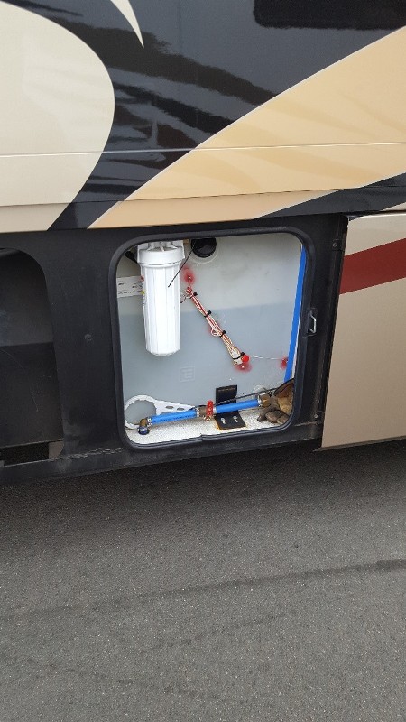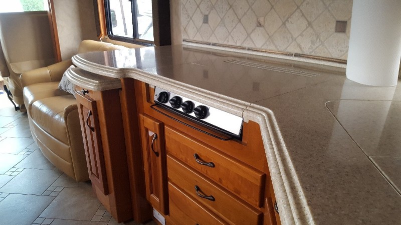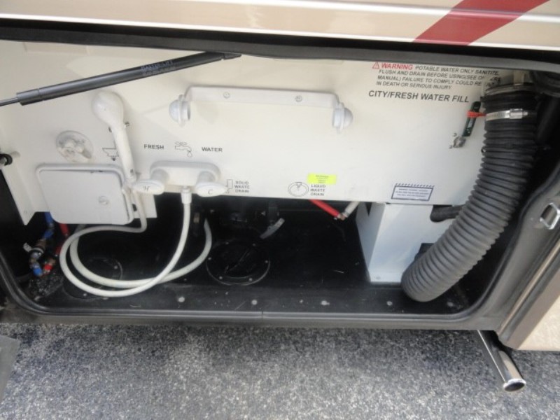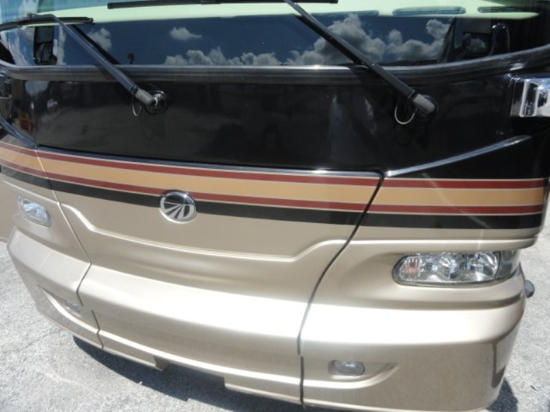 condition and ready for the road. Front tires have around 10 thousand miles, rear tires have around 6 thousand miles, fuel filters replaced, aqua hot was serviced, new wiper blades, and Generator serviced. Also, newer BBQ grill attached to propane tank. Here are some of the features. Two huge through and through luggage slide out trays, window awnings, Aqua hot heating system, Sani-Con holding Tank Emptying System with Macerating Pumps, In motion satellite, Airtabs vortex generators designed to increase vehicle aerodynamic performance and fuel economy, Airbags stabilizing system, there are no jacks that come out the bottom of the coach. Just press a button and the coach with level it's self automatically. Bath and a half, Automatic air venting system with rain sensors, three burner stove, last year of propane system, 10000 watt generator, and much more. |