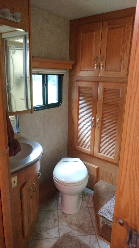 | Many upgrades 2 flat screen tv's, washer dryer, dishwasher, convec/microwave, 2 new a/c units, leather seats, 1 1/2 baths, linen closet, 2 safes, 2 pantries and lots of storage. Additional storage below with 2 pullout trays accessible from both sides of Motor home. Has a built in desk for computer, upgraded sunscreens and shades. |