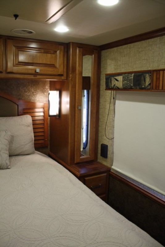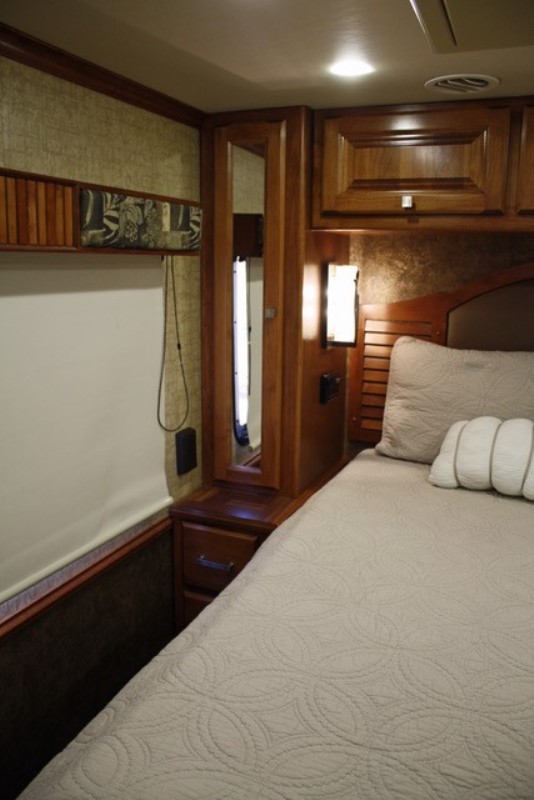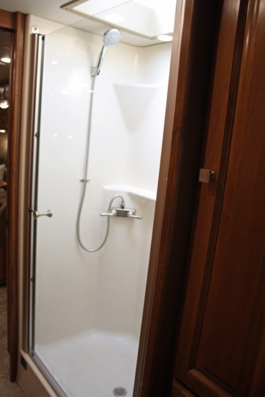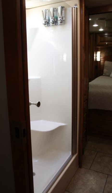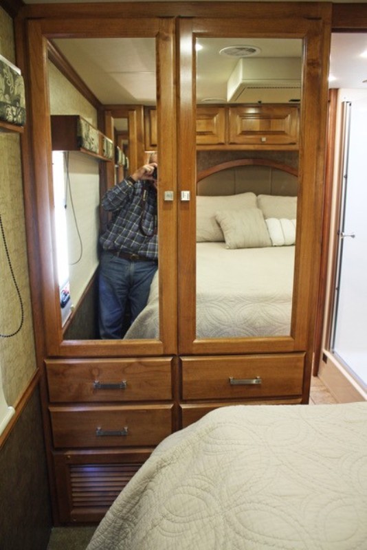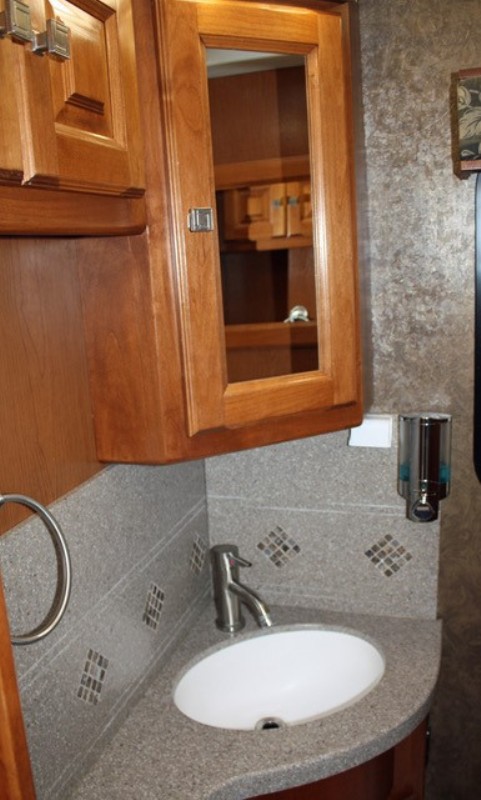 I polished the aluminum wheels as well. The home has two slide outs opposite each other to create a spacious living area. The home is 33’ long and is 11’2” tall to the top of the two AC units. It is the lowest Class A diesel pusher on the market which worked well as the storage area we rent has a 12’ high door. It is built on Tiffin’s own Powerglide chassis with independent front suspension. IFS is typically only found on very high-end motorhomes and contributes to how well this coach drives. It is powered by a Maxxforce 7 diesel with 240HP and 620 ft lbs of torque with an Allison six speed automatic transmission. Since the coach only weight 26,000 lbs., the power to weight ratio is comparable to higher powered but heavier motorhomes. We have driven it extensively in mountains out west and, while not a speed demon, it easily handled even the 10% Teton pass grade. It also has an engine brake to ease concerns when descending that mountain pass. All services are up to date and the coach has never thrown an engine code. It has run flawlessly for us and the previous owners. Another high-end feature is the one-piece slide out. There are no seams which makes them leak proof. Again, only high-end coaches normally have this feature. Tiffin has been building motorhomes since 1972, so they know how to build a good coach. The cabinets are all hardwood custom made by Tiffin in their factory. The coach has automatic leveling which makes setup a “Breeze”. One of the reasons we bought a Tiffin was their sterling service reputation. We had two warranty items repaired by Tiffin in spite our not being the original owners. They are also very prompt on sending out parts. This home came with every option available on a 2014 Breeze: Exterior TV Front TV Bedroom TV In motion Satellite 15,000 btu front AC with Heat pump Central Vacuum Two ducted LP gas furnaces Icemaker The coach came standard with an over the air antenna that never worked well. I replaced it with a Winegard Razar automatic searching antenna. It works very well and pulled in 23 stations when we were in Florida. The patio and door awnings work well. Also, standard is a DVD surround sound system with ceiling speakers and a sub-woofer. Last fall I replaced the coach batteries with Lifeline sealed batteries. The interior is in excellent condition and is very, very clean. Neither owner smoked. We had custom sheepskin seat covers made for the captain’s chairs. It is common for the material on these seats to show some wear, so we covered them to protect them. Also, they are extremely comfortable both while driving and while using them as chairs to watch TV as they both swivel. For convenience, I installed cup holders next to the captain’s chairs to hold our beverages while watching TV. For safety reasons, I installed a Tire Pressure Monitoring system that monitors both the motorhome and our towed car’s tires. I also installed a 7” Garmin RV GPS on the dash. Both items would go with the coach. It has both rear and side facing cameras tied to a screen in the dash. The radio is Sirius XM ready. The power window shade on the windshield is standard. It also has an Onan 6000-watt generator that will power everything in the coach. The jack knife sofa makes into a bed and the dinette table can be lowered and cushion installed on it for additional sleeping area. It has a queen-sized memory foam mattress with a large storage area beneath the bed. The bedroom has three wardrobe closets with the larger one being lit upon opening the doors. There are two glass centered pocket doors to provide privacy to the rear of the coach. I also installed towel holders in the bathroom for drying our towels during the day before placing them in the laundry bag. The shower is generously sized and is across from a separate lav/commode bath. The original shower door rubbed on the threshold and I could not repair it. So I replaced it with a high quality Kohler single piece glass door. I also installed soap dispensers in the shower stall which is lit by an overhead skylight. I also installed soap dispensers in the bath and kitchen. The kitchen features an 8-cu ft refrigerator that runs on both LP gas and electric. It also has a combination microwave/convection oven and three LP gas burners. The double bowl stainless steel sink is in excellent condition. My wife sat a hot pan on the countertop in front of the sinks which left some slight marring. |