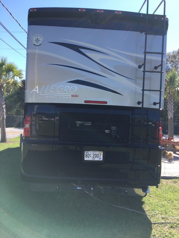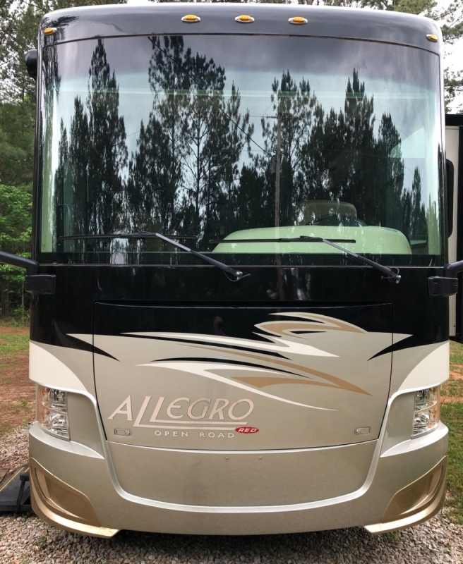 | This Motorhome has been wonderful for us, unfortunately vision problems force us to sell! Only 13694 miles, 88 generator hours. Stacked washer-dryer, bath and a half, microwave/convection oven, macerater toilet in main bathroom, two a/c-heat pumps on roof, 2 propane furnaces, electric heater in living room, 4 flat screen TVs all set up for Dish network. Winegard Pathway X2 portable antenna, in motion satellite antenna, OTA antenna, cable hookup, DVD player with surround sound. Queen size bed, ceiling fan in bedroom. Cummins 6.7 liter diesel, automatic Allison transmission, Michelin tires in great condition. Gets about 9 mpg when towing, no problems with hills/mountains. Has patio and door awning! Comes with Blue Ox Aventa LX tow bar and RVI-2 toad braking system, All you need is a Blue Ox baseplate for your 4 down toad and you are gone! Much, much more with this beautiful rig! |