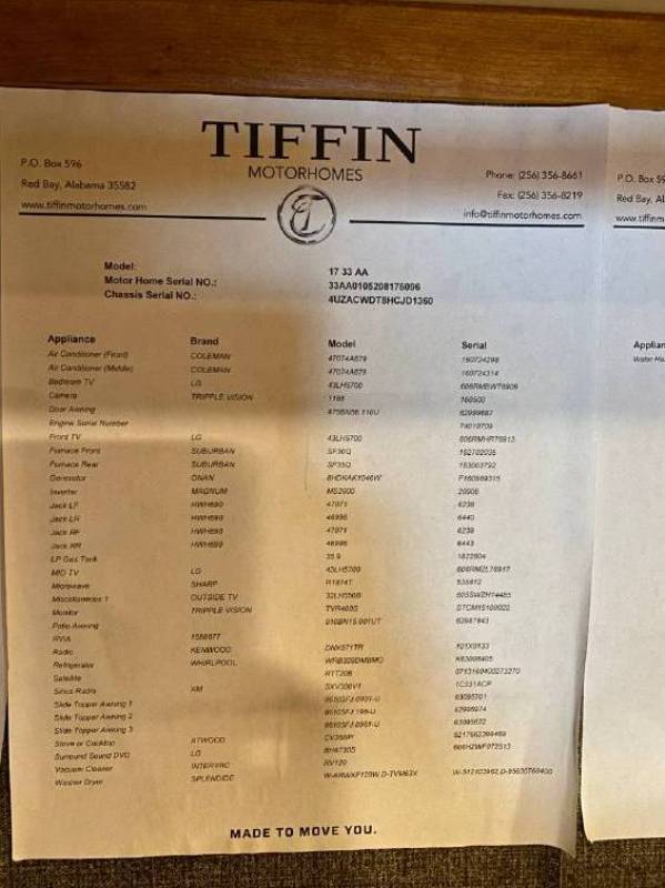sale at The RV Loft, a Tiffin RED 33AA. Stored