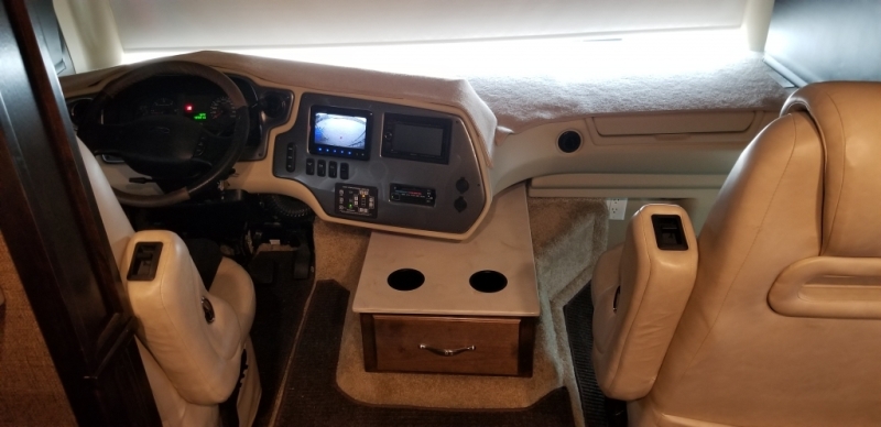 | 2016 Tiffin Open Road 36 LA...original owner, has 19,800 miles. Upgrade driver and passenger seats with heat and lumbar...tile floor extended to drivers and passengers area and custom fit outdoor carpet, center cover replaced with custom wood with drawer, Tru Center by Blu Ox, sway bar on front, Tyron on front wheels, Kona shocks, accent lighting under coach. 7k onan generator with 114hrs....4 chairs with dinette table... |