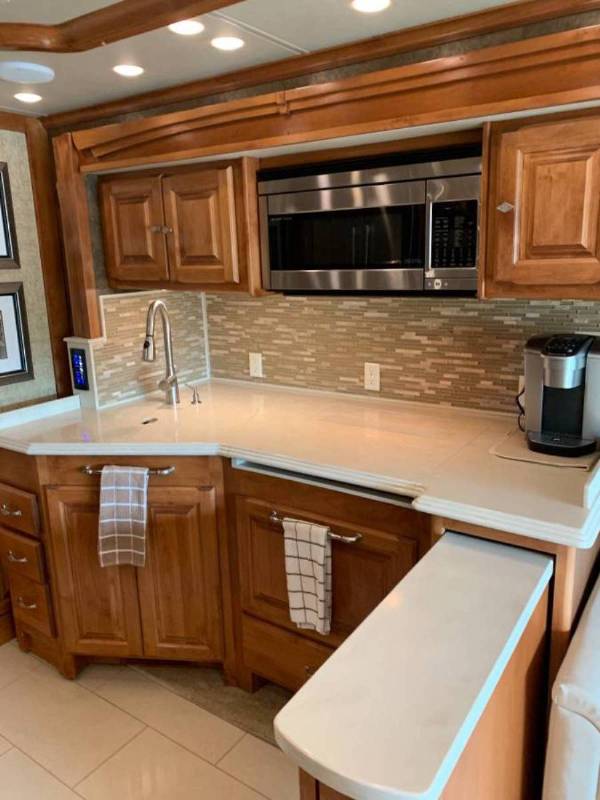 2015 Tiffin Phaeton Low mileage (27,420), excellent condition, color: black/brown/red/gold, interior:white/cherry 2015 Tiffin Phaeton 36 GH 36’ Class A Motorhome. Cummins Diesel Engine. All Electric. 4 slide outs with Toppers and one Awning. Sleeps 4. Dual AC units. Hydraulic Leveling System. The Tiffin Phaeton 36 GH Class A Motorhome offers a private rear bedroom. The bed is within a slide out and there is a nightstand on each side. with overhead cabinets above the head of the bed. The rear wall of the coach holds a large closet as well as a corner closet for the washer and dryer. The wall opposite the bed includes another slide out with an overhead cabinet, a TV, hamper and drawers below. Just outside the bedroom this slide continues with overhead cabinets and a large vanity with sink. A slide aisle bathroom is across the hall and includes a corner shower, toilet and corner vanity sink. Moving into the living/dining area the curb side holds a slide out with a residential refrigerator, pull out dining table and 4 chairs, a computer work station and a recliner chair, over head cabinets and a surround sound TV in the corner with a fireplace directly below the TV. At the front of the Phaeton 36 GH you will find more overhead cabinets and additional storage. On the road side of the 4th slide out holds a queen sized sofa bed, overhead cabinet range, overhead convection/microwave and angled double sink with drawers storage and drawers with a pullout island. Outside you will find an exterior TV and lots of basement storage. Additional Features: Ice maker, Central Vacuum, Fireplace, Multiple TVs, Surround Sound CD/Stereo, Blue Tooth DVD Player, Wineguard Travl’r 1000 Satellite Dish, Hopper Dish Receiver, Cable Ready, Washer/Dryer, Outside Shower, 10K Generator, Aqua Hot Unlimited Heat/Hot Water System, ACs with Heat Pumps, Smoke/CO Detectors, Blue OX Hitch Bar, Backup and side Mirror Cameras, Cruise Control, Exterior Bedroom and Living Room Awnings, Dishwasher, GPS, Adjustable LED Lighting throughout , T Safety Bar, RVi Braking system, Magne Shade Tire Covers, Tile floors throughout the main flooring |